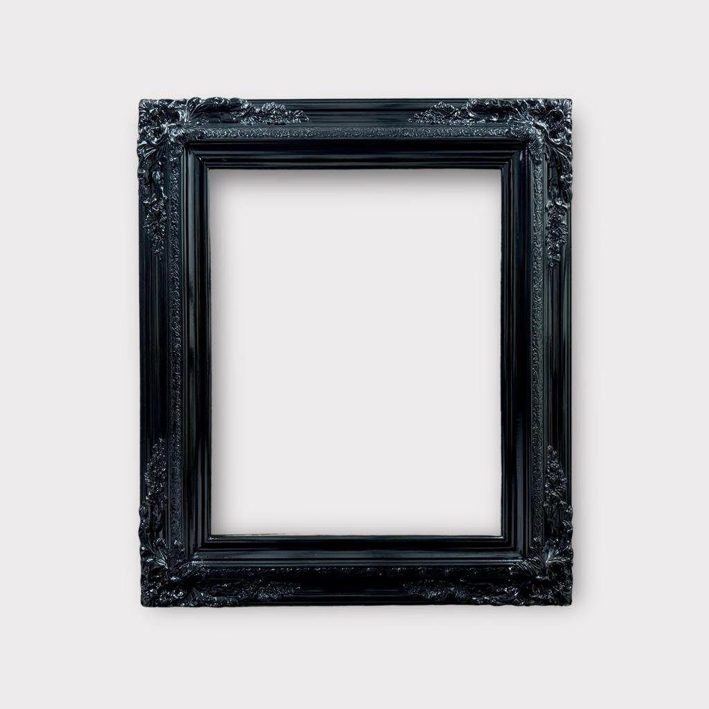 Traditional compo Xl ornate corners wood frame, HIGH GLOSS BLACK, vintage wood picture frame, antique style