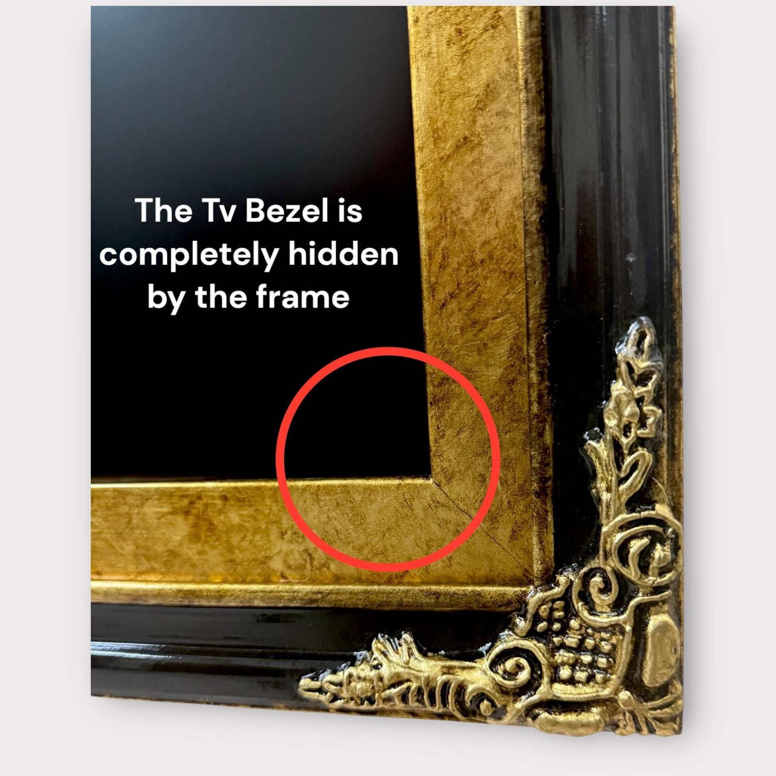 65 & 75 Inch Hisense Canvas TV Ornate frame, Glossy Black with Gold leaf, Canvas TV by Hisense, not meant for use with other TVs,