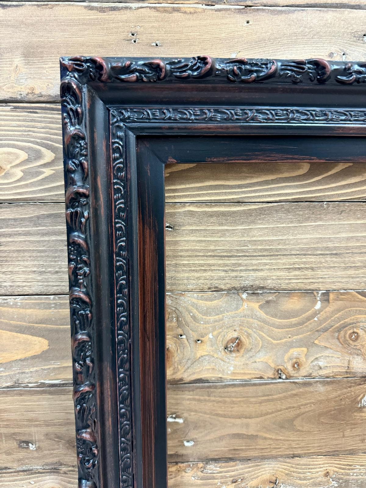 THE FRAME IS HAND PAINTED WITH AN ANTIQUED DISTRESSED BLACK FINISH