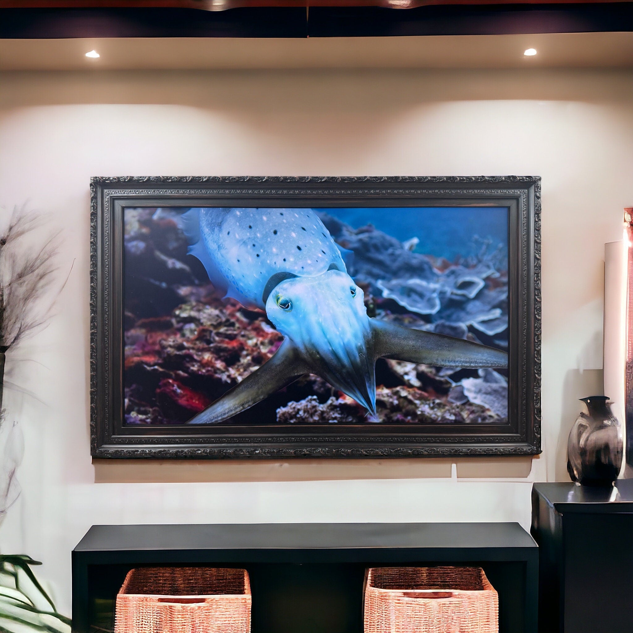 55 & 65 inch Ornate frame for Samsung The Frame TV and Frame Pro TV models, Distressed Black finish,not meant for use with other TVs.