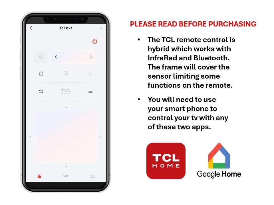 *** Please note that sensor will be covered and you will need the TCL HOME APP OR GOOGLE HOME APP TO CONTROL YOUR TV.