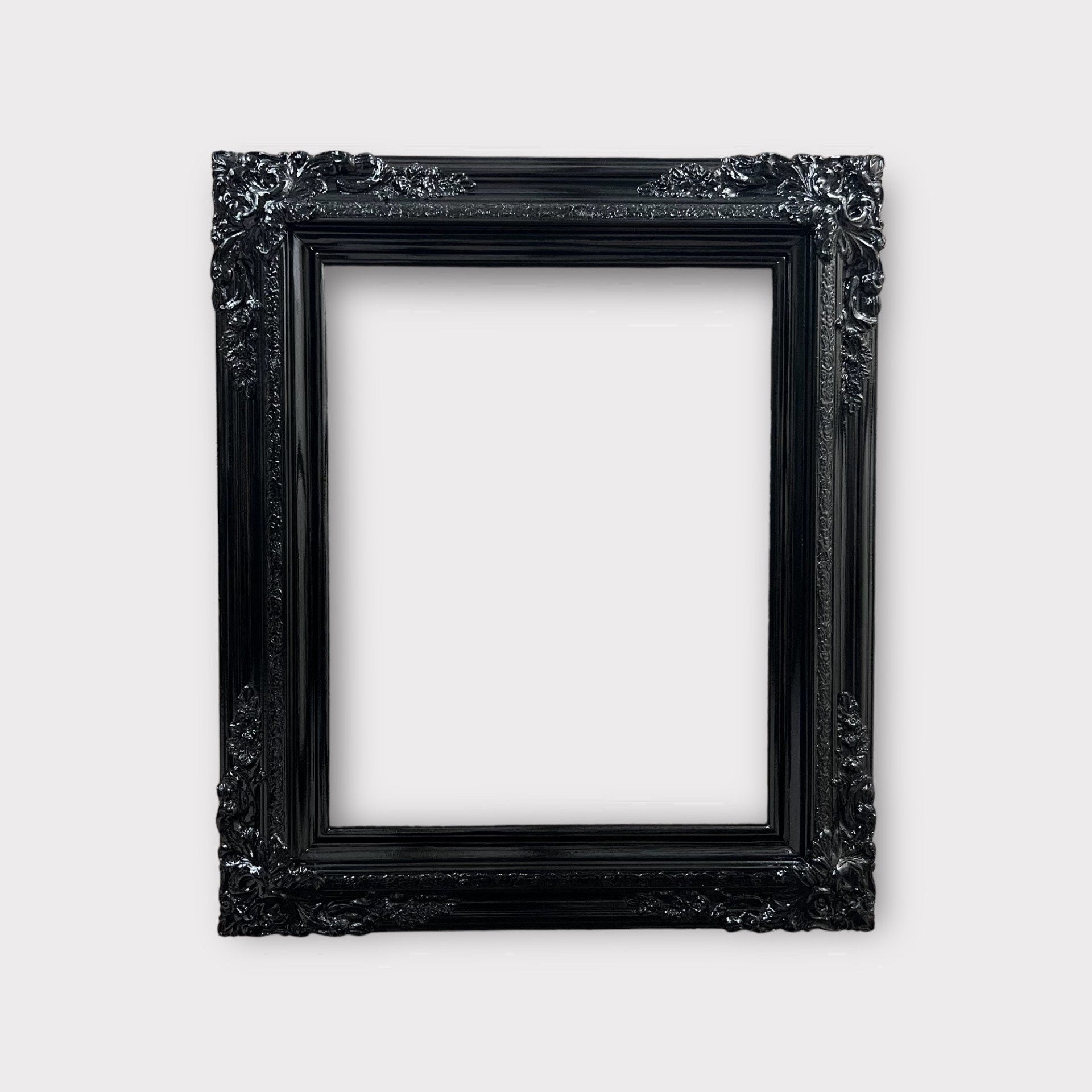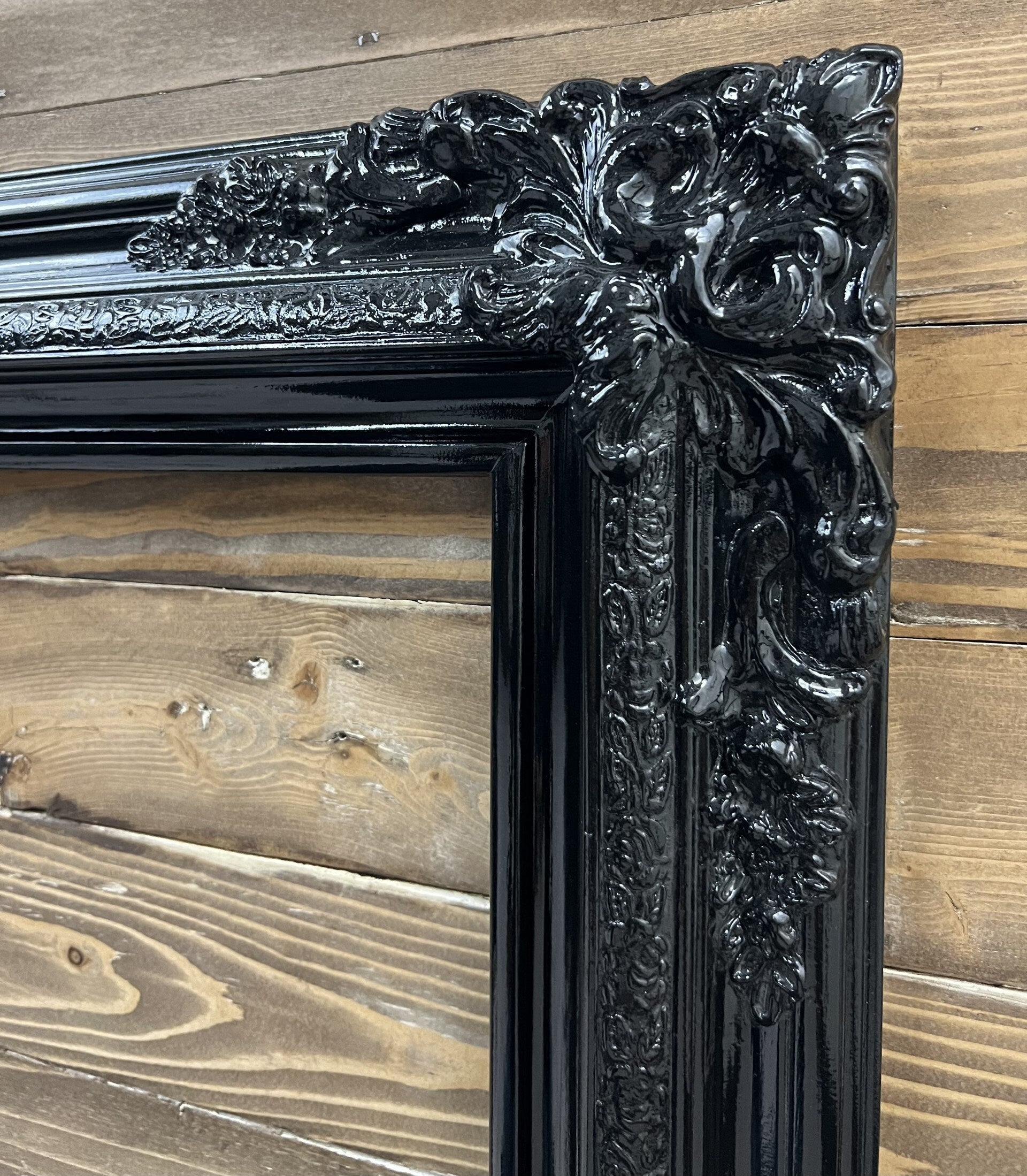 11 x 17 In Stock - Ready to Ship, Traditional compo Xl ornate corners wood frame, HIGH GLOSS BLACK, vintage wood picture frame,