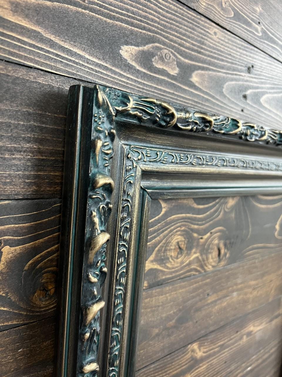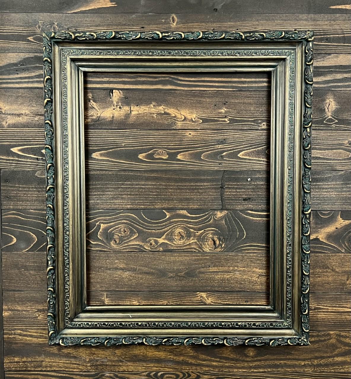12 x 18 In Stock - Ready to Ship, Vintage style Black wood picture frame with compo ornate trim, distressed gold, antique style, ornate