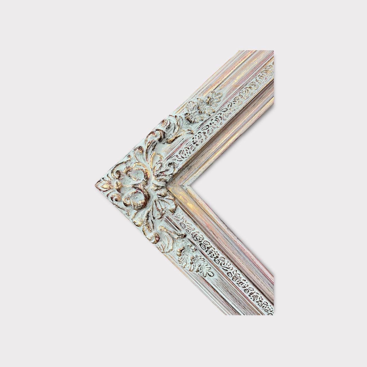 TRADITONAL WOOD PICTURE FRAME WITH XL COMPO ORNATE CORNERS. THESE ARE TWO PIECE SOLID WOOD FRAMES WITH AN ENGRAVED TRIM AND DECORATIVE FLORAL CORNERS. ALL OF OUR PICTURE FRAMES ARE ASSEMBLED WITH CLOSED CORNERS. WE CUT, JOIN, SAND, AND FINISH IN MANY UNIQUE TECHNIQUES.