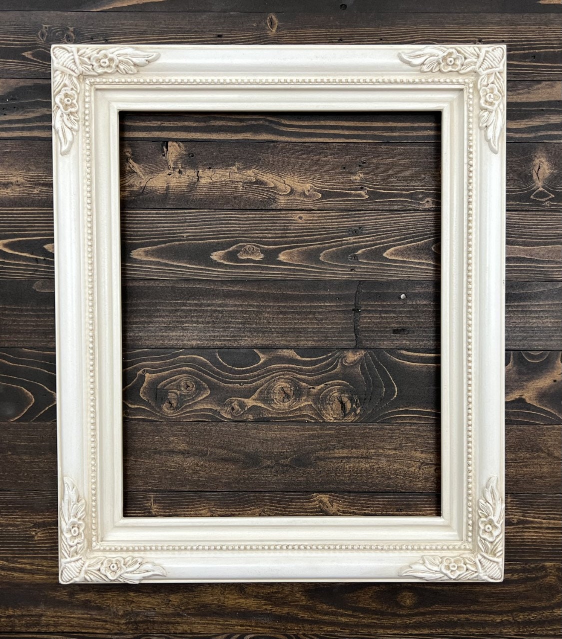 16 x 20 In stock ready to ship, Traditional French style ornate wood frame, IVORY STAIN, hand painted ,vintage style wood picture frame,