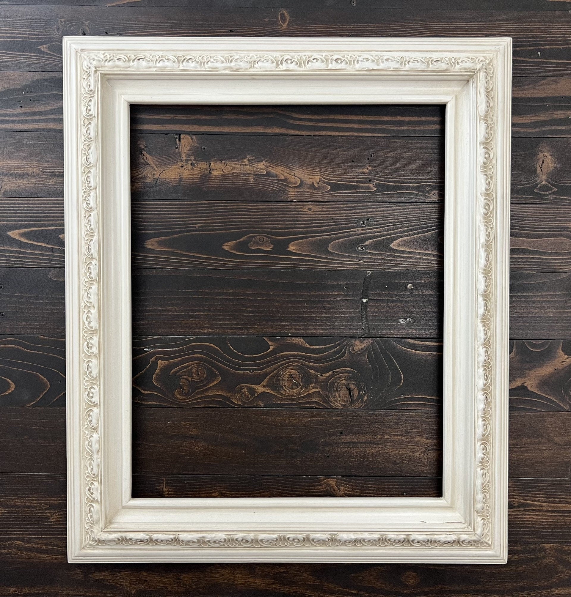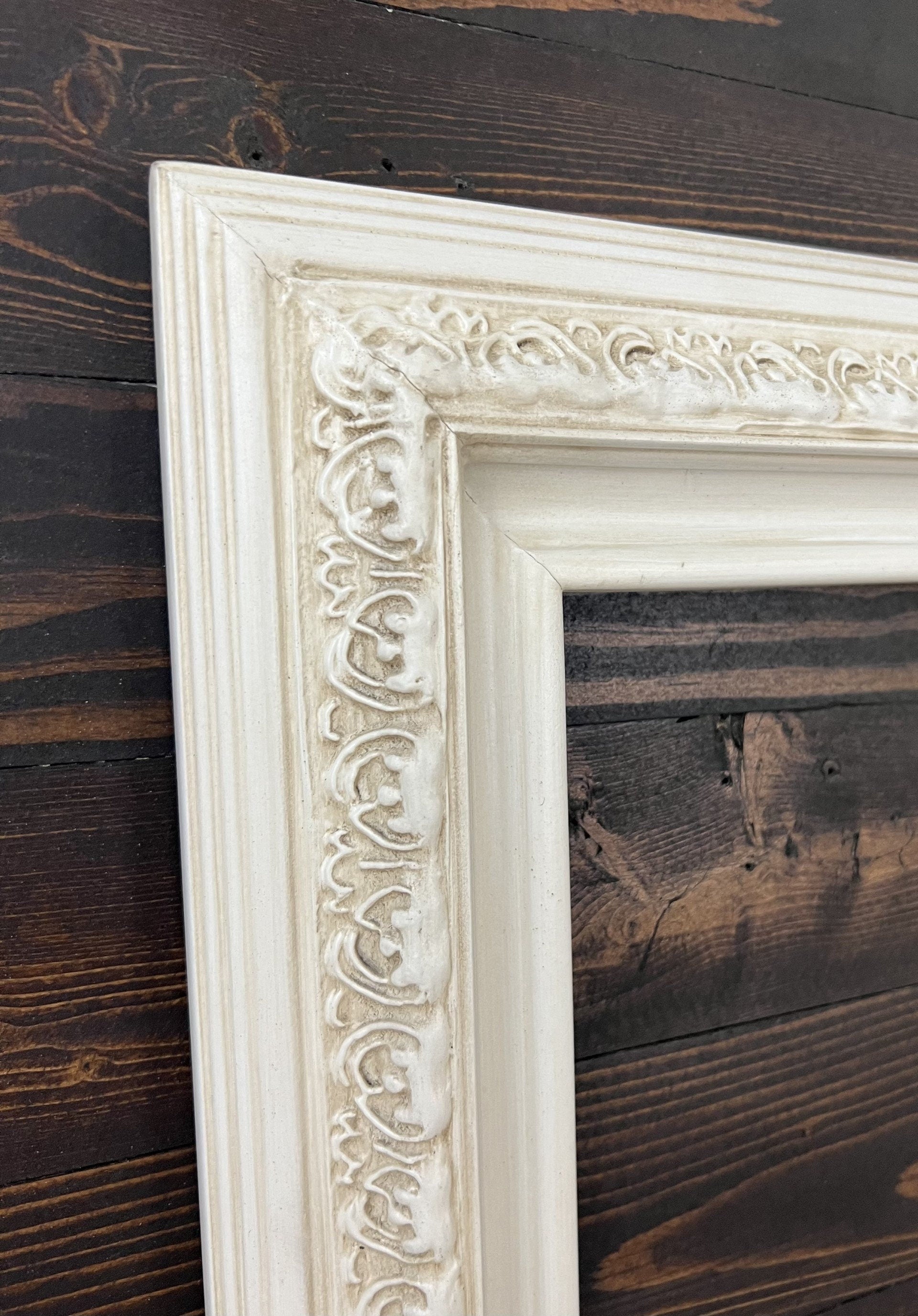 16 x 20 In Stock - Ready to Ship custom wood frame with compo ornate trim, IVORY FINISH frame,canvas frame,photo frame, custom made green