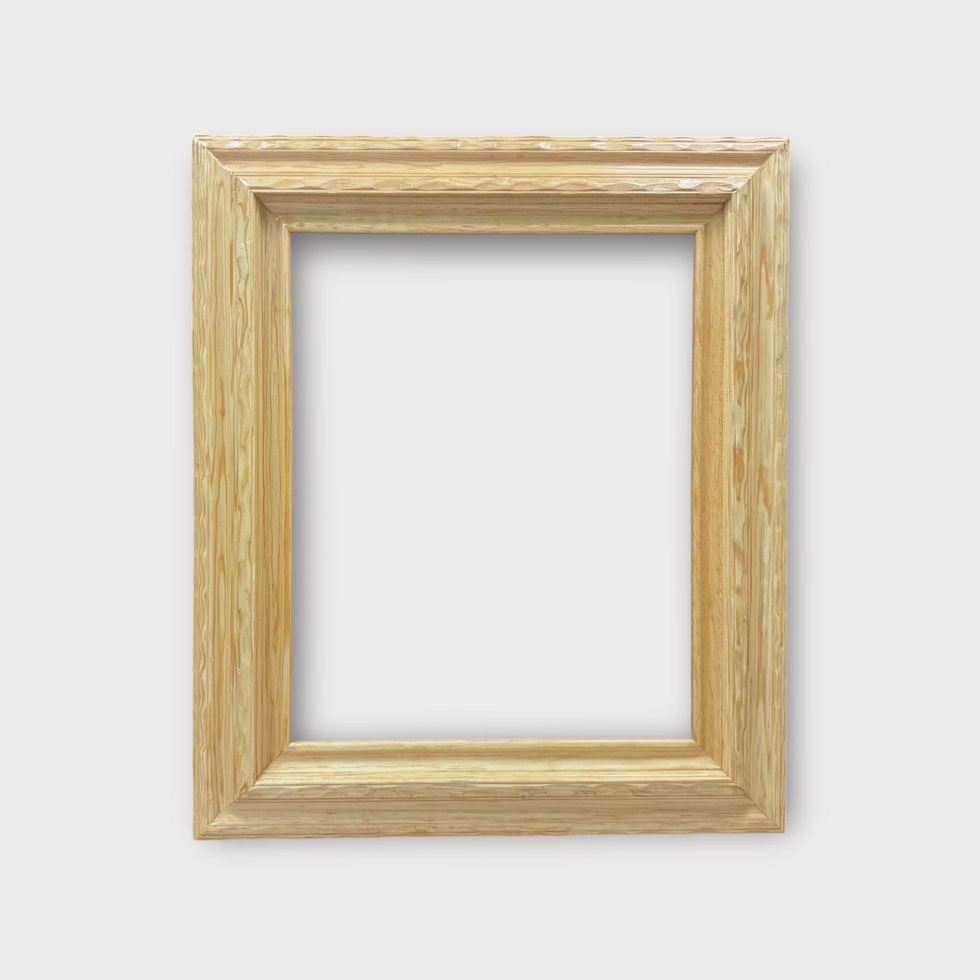 Western style wood picture frame. This two piece solid wood frame is hand distressed and painted. Each picture frame has unique carvings all around the frame for a rustic aged appeal. This frame has a very light natural stain with a smooth matte finish. These are great all around frames for any country, western, or rustic style decor.