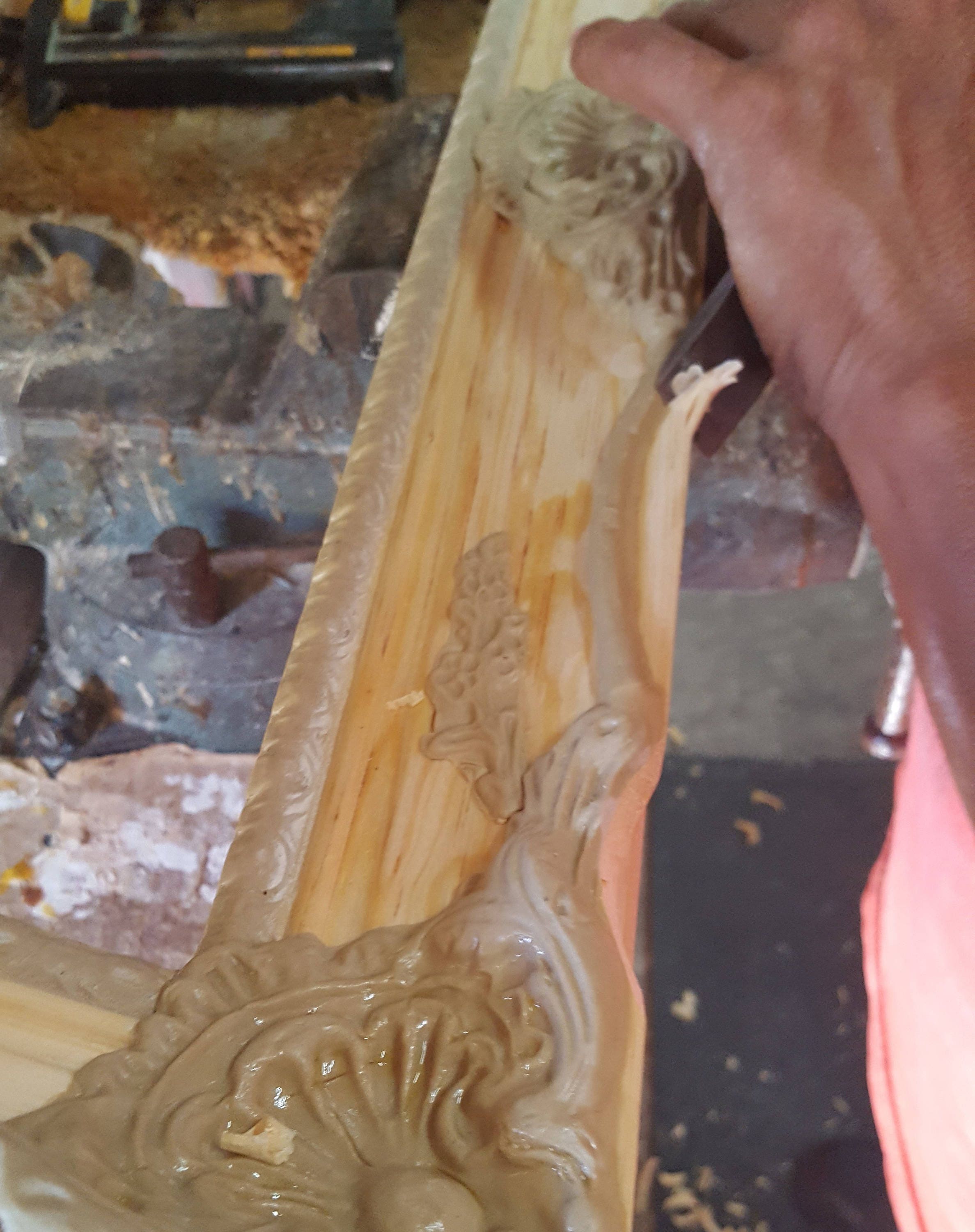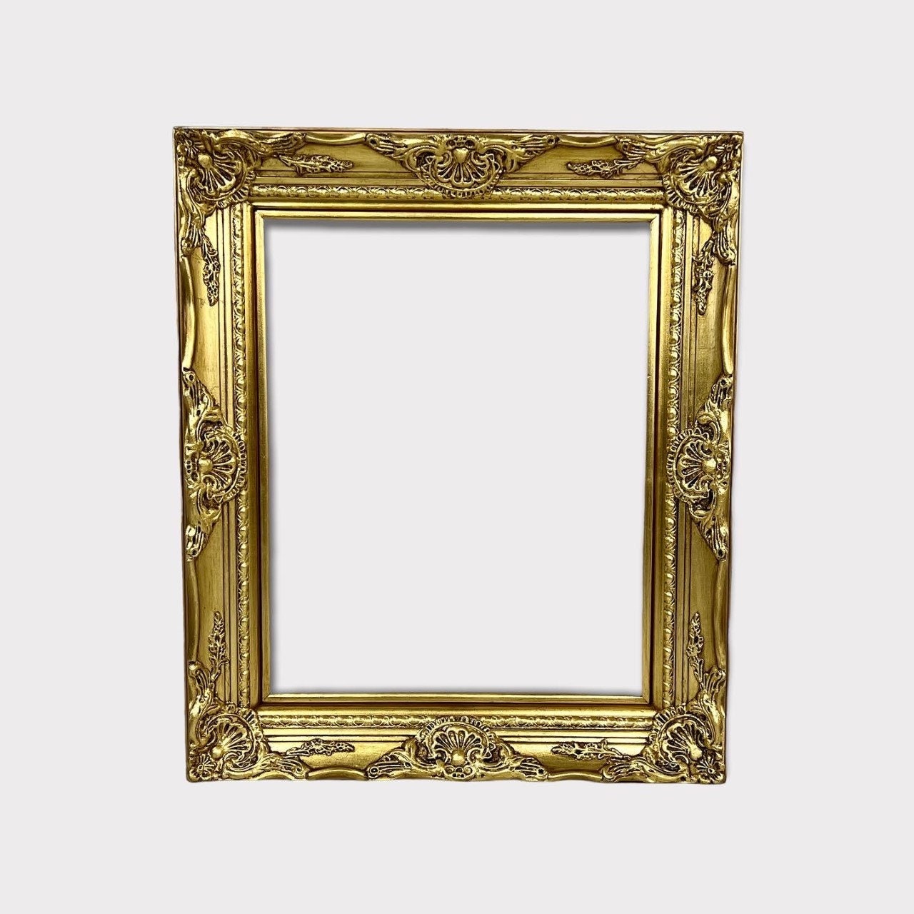 CLASSIC COLONIAL STYLE PICTURE FRAME. THIS VINTAGE STYLE FRAME HAS DETAILED CORNER AND CENTER DECORATIONS WITH HAND CARVED EDGES.