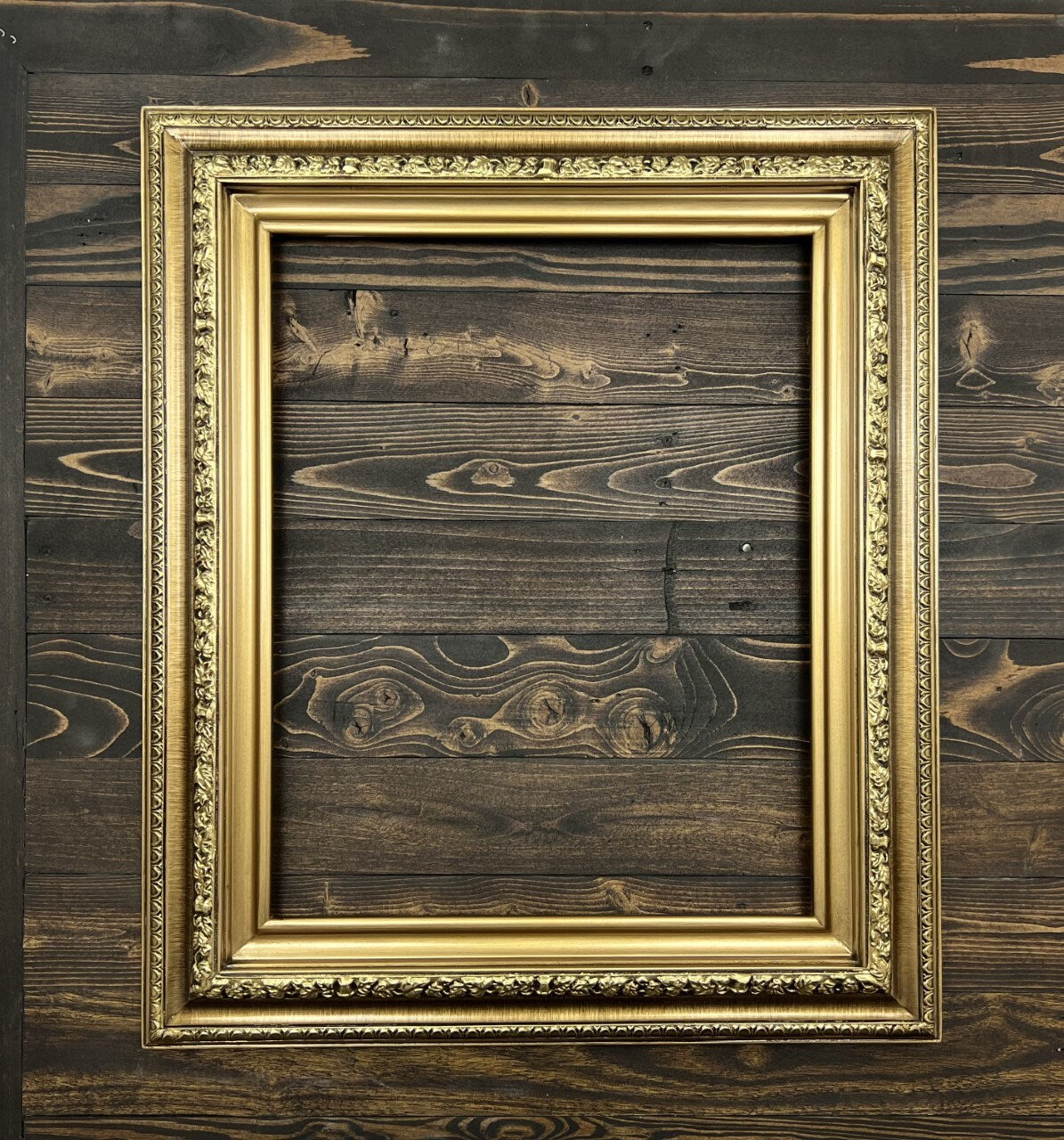 CLASSIC STYLE WOOD PICTURE FRAME WITH A FLORAL DECORATIVE GOLD LEAF TRIM.