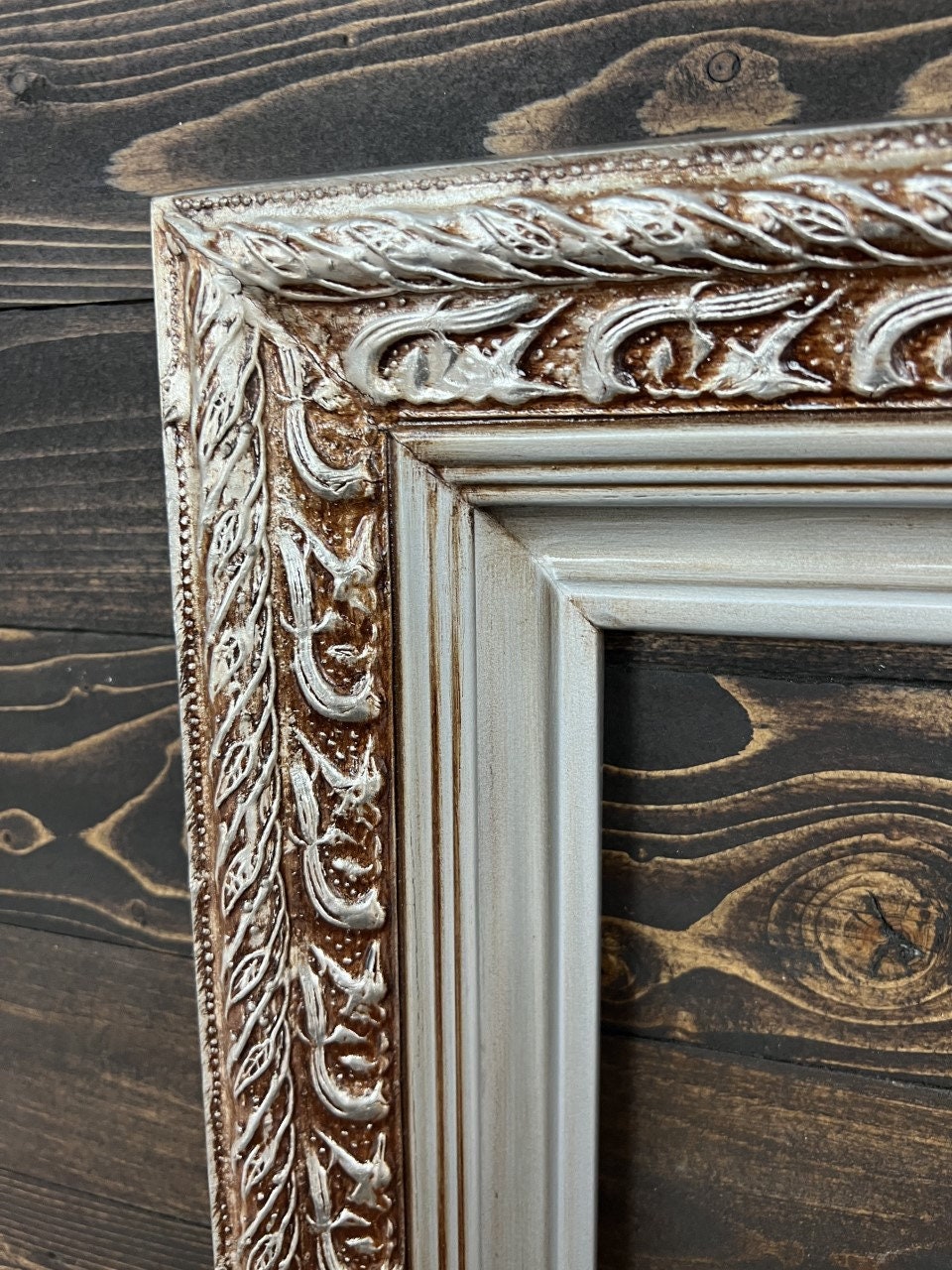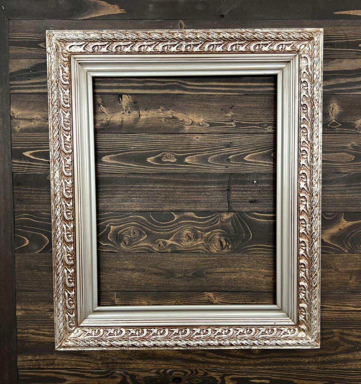 20 x 30 In stock ready to ship, Silver leaf wood picture frame, ornate frame, botanical pattern, antique frame, vintage frame, custom