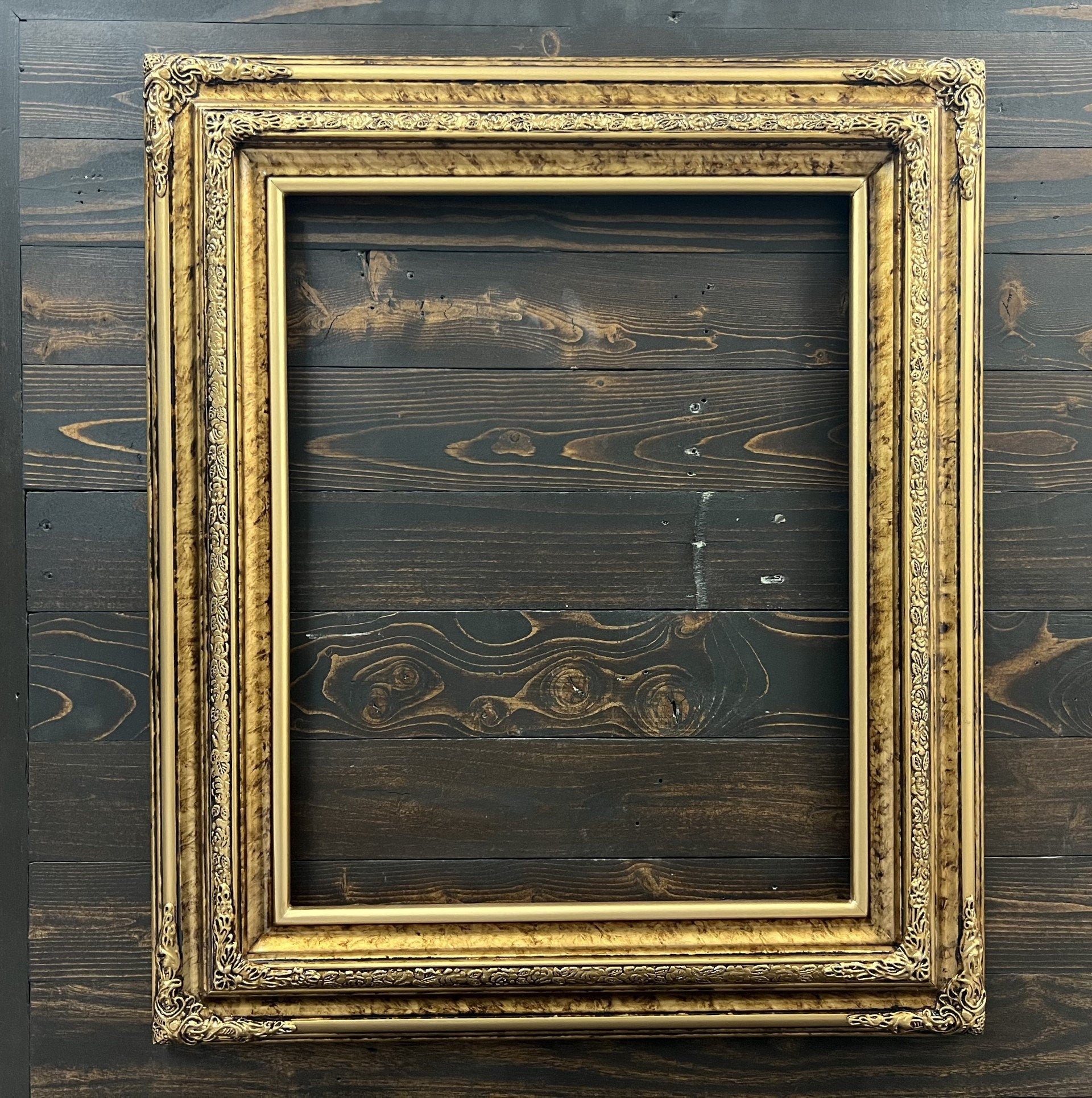 TRADITONAL WOOD PICTURE FRAME WITH COMPO ORNATE CORNERS. THESE ARE TWO PIECE SOLID WOOD FRAMES WITH AN ENGRAVED TRIM AND DECORATIVE FLORAL CORNERS. ALL OF OUR PICTURE FRAMES ARE ASSEMBLED WITH CLOSED CORNERS. WE CUT, JOIN, SAND, AND FINISH IN MANY UNIQUE TECHNIQUES.