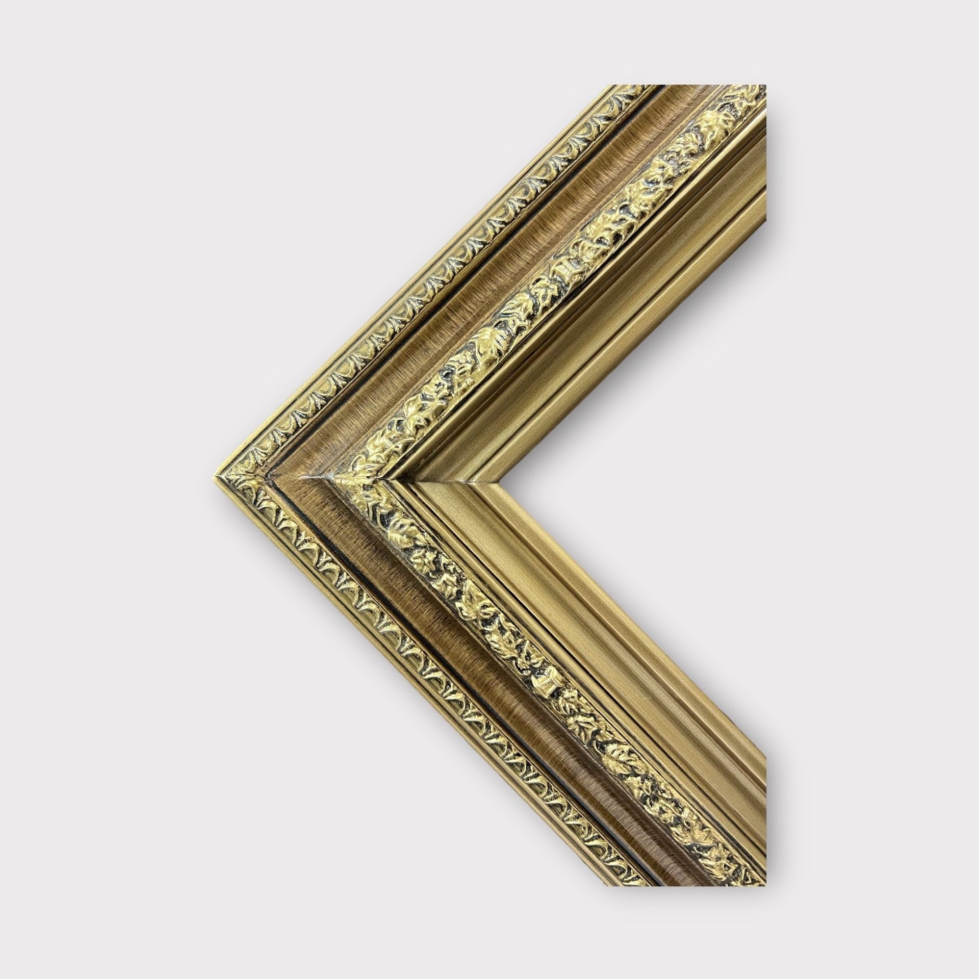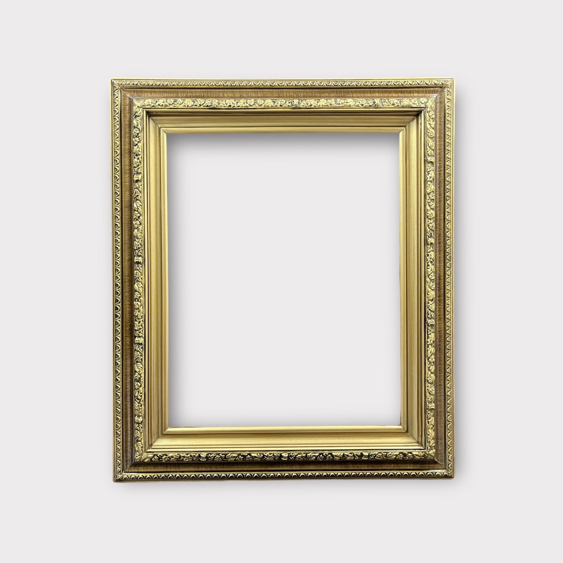 CLASSIC STYLE WOOD PICTURE FRAME WITH A FLORAL DECORATIVE GOLD LEAF TRIM.