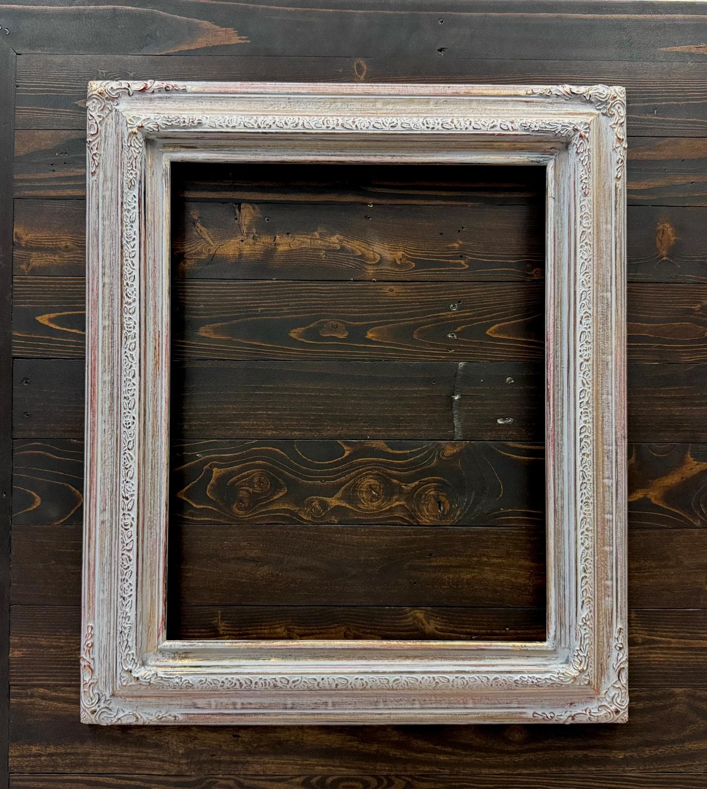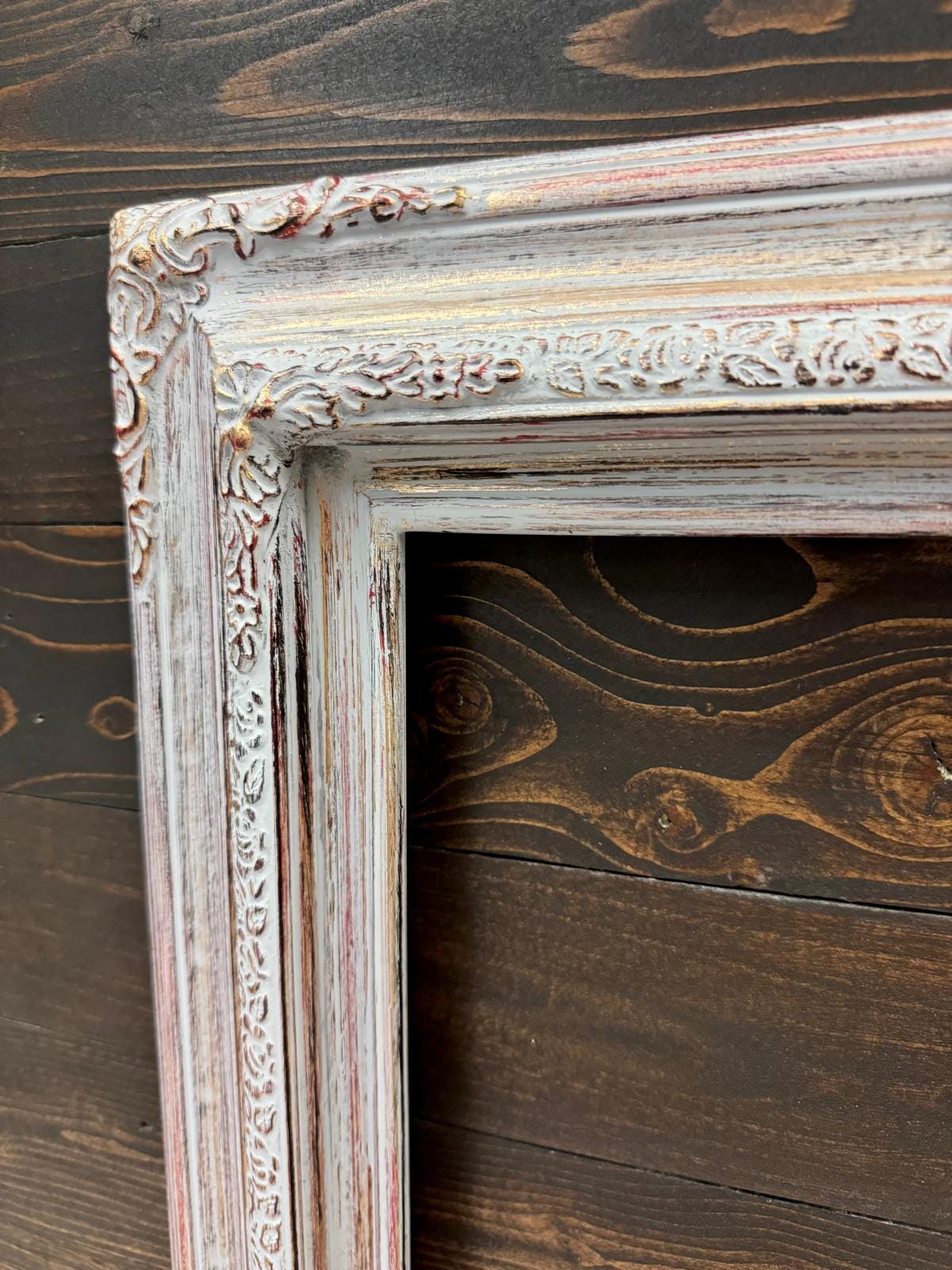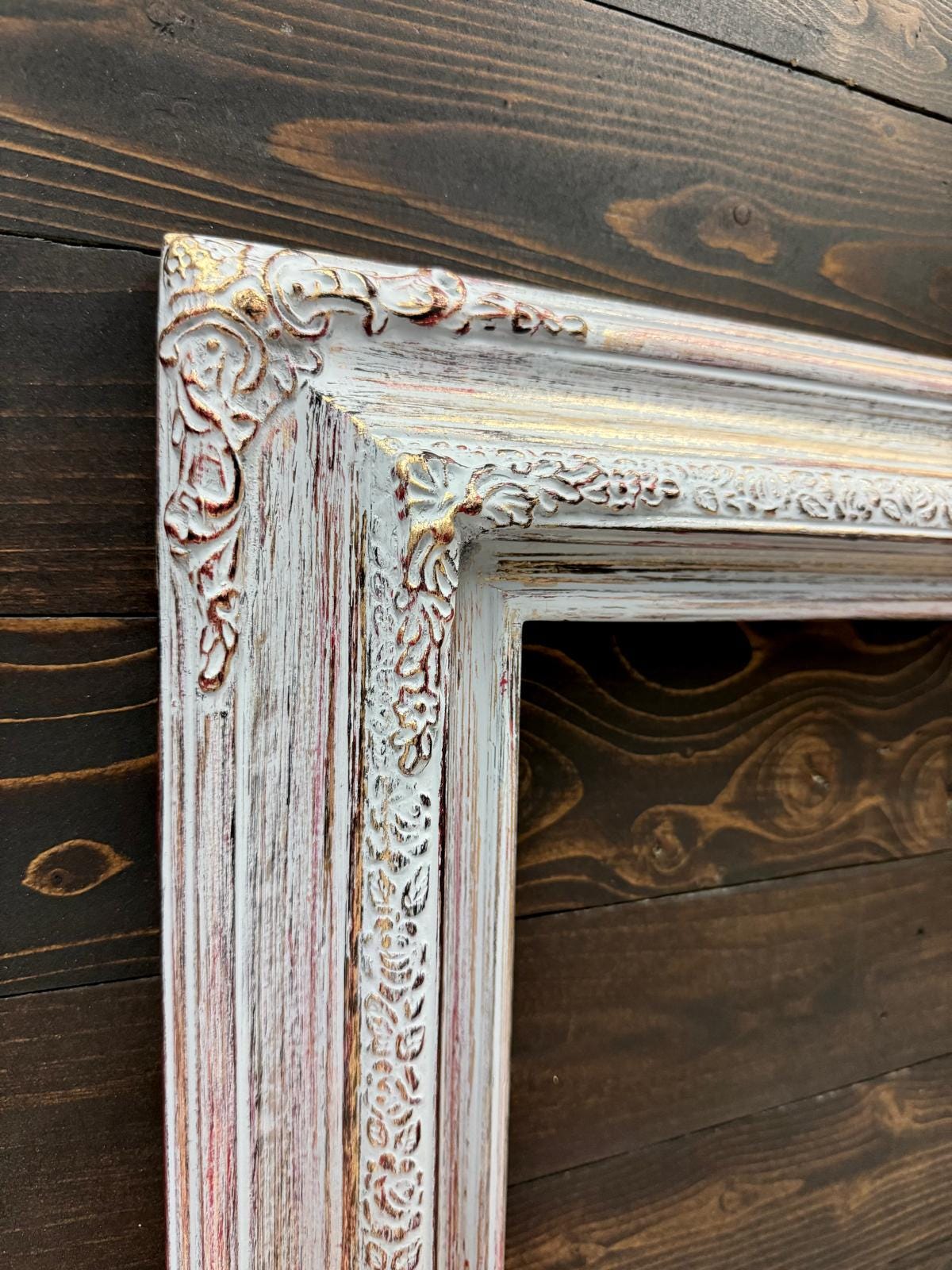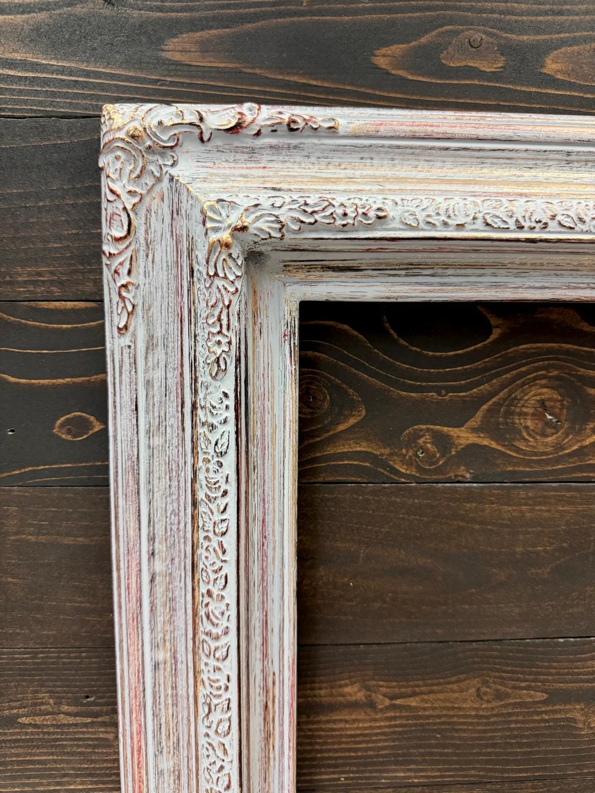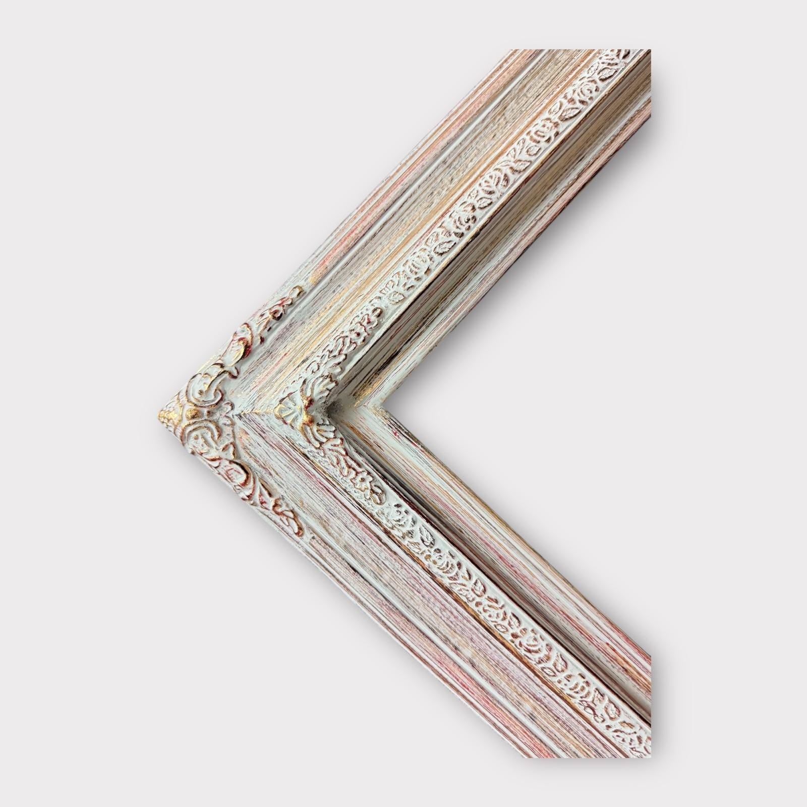 TRADITONAL WOOD PICTURE FRAME WITH COMPO ORNATE CORNERS. THESE ARE TWO PIECE SOLID WOOD FRAMES WITH AN ENGRAVED TRIM AND DECORATIVE FLORAL CORNERS. ALL OF OUR PICTURE FRAMES ARE ASSEMBLED WITH CLOSED CORNERS. WE CUT, JOIN, SAND, AND FINISH IN MANY UNIQUE TECHNIQUES.