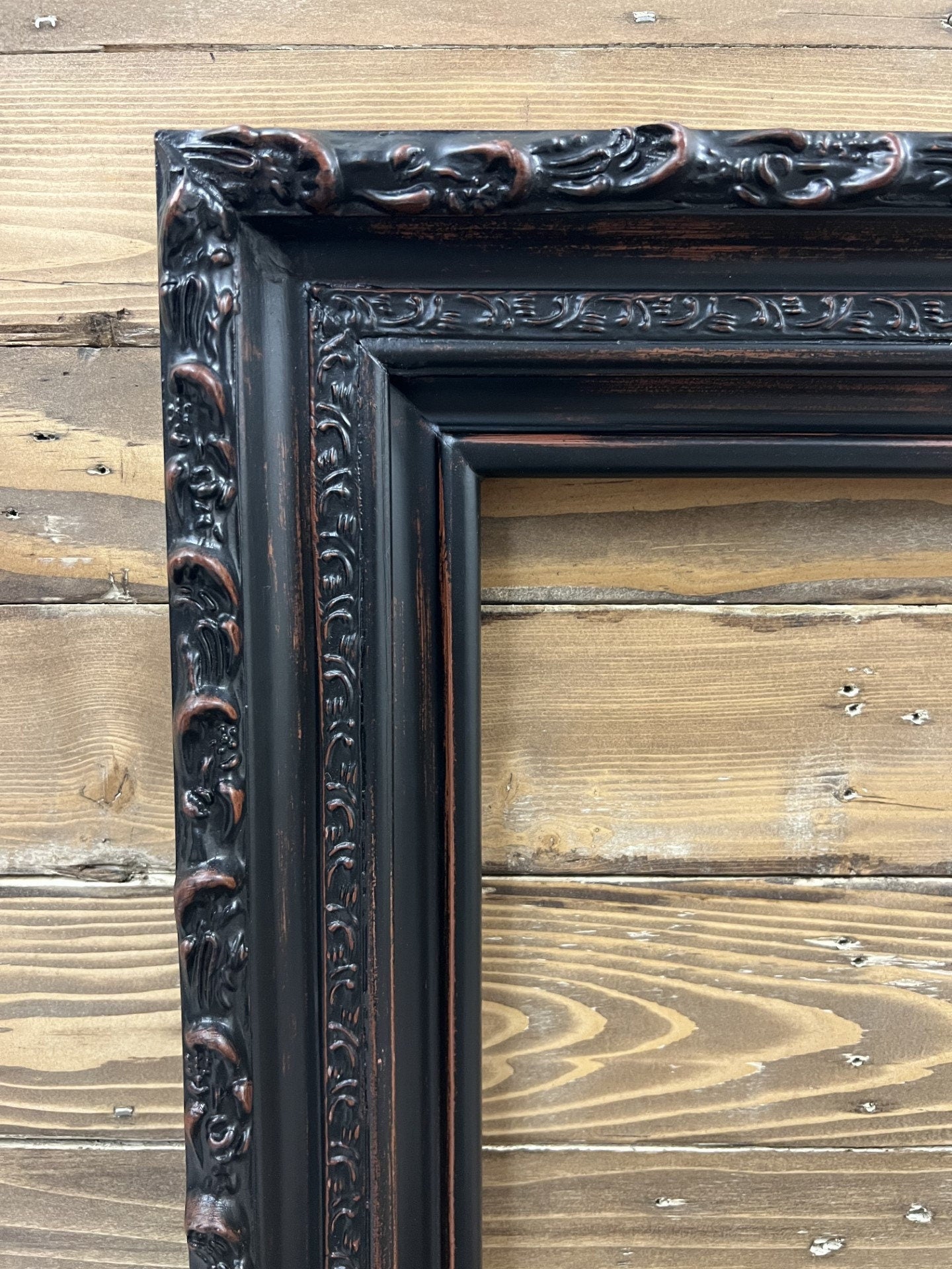 30 x 40 In Stock - Ready to Ship, Vintage style Black wood picture frame with compo ornate trim, DISTRESSED BLACK, antique style, ornate