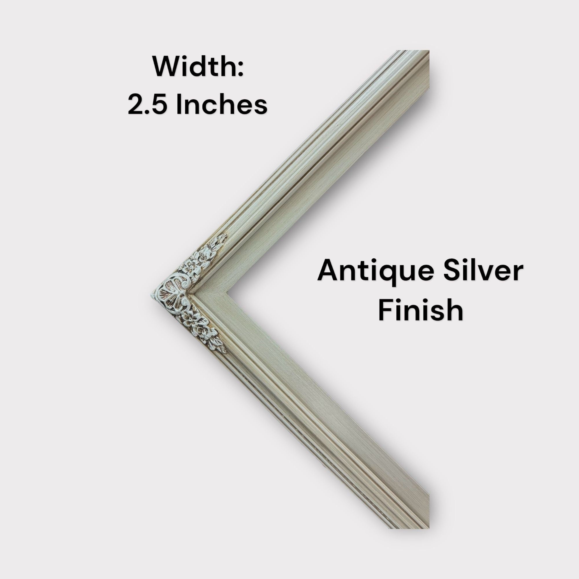 32, 43, 50, 55 inch Ornate frame for Samsung The Frame TV and Frame Pro TV models, Antique Silver finish,not meant for use with other TVs.