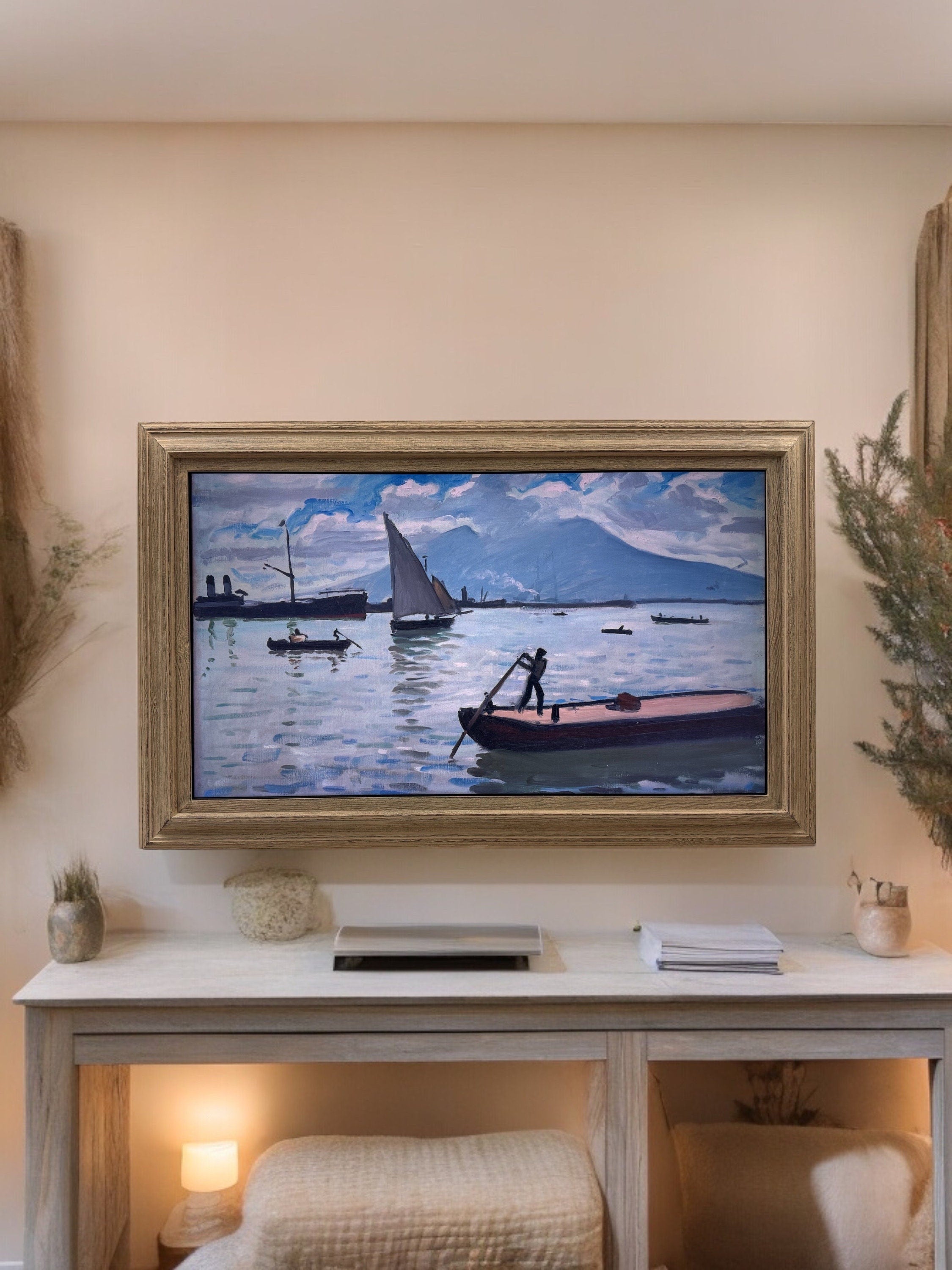 55 & 65 inch TV frame for Samsung The Frame TV and Frame Pro TV models, Rustic Driftwood finish,not meant for use with other TVs.