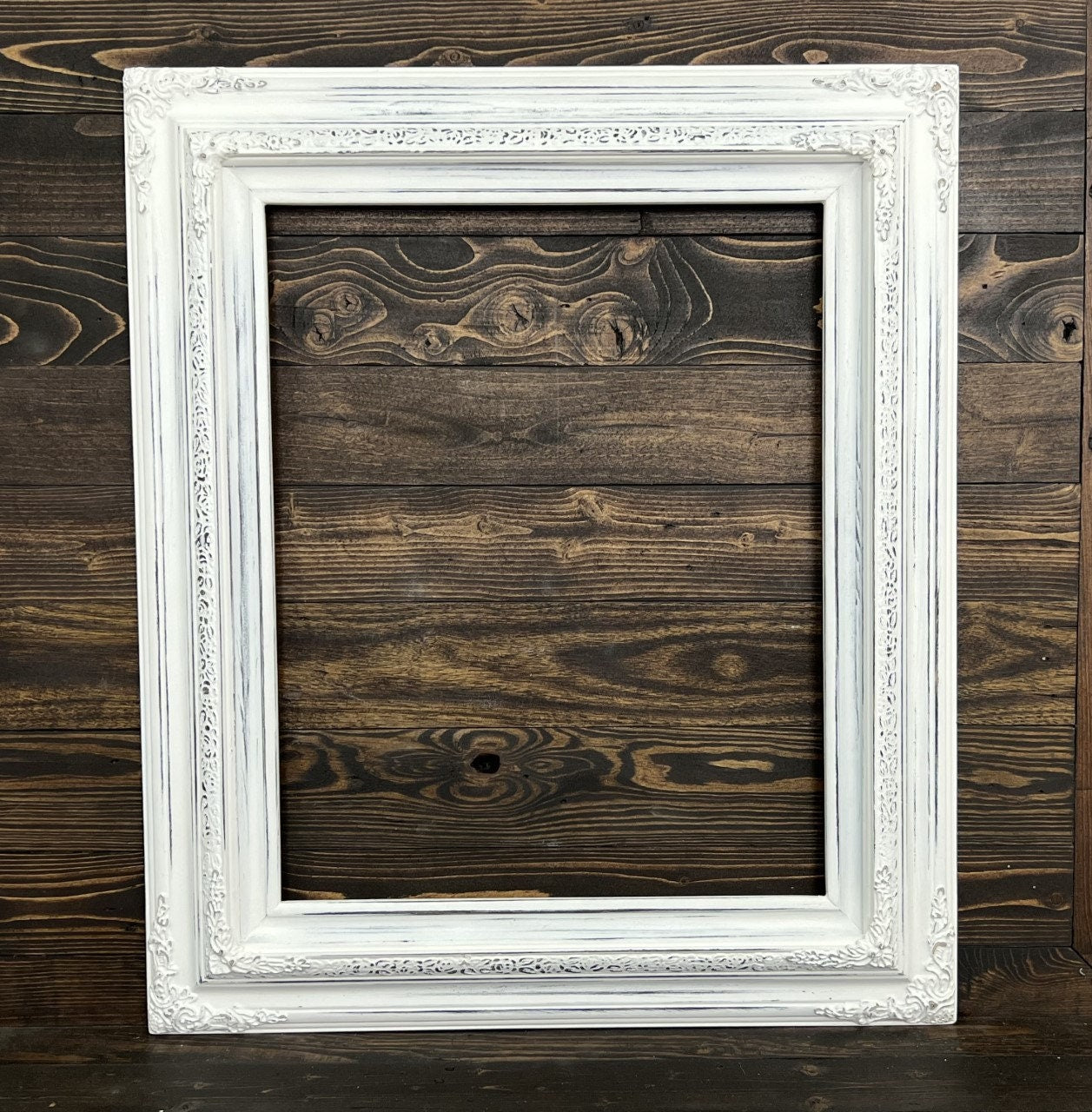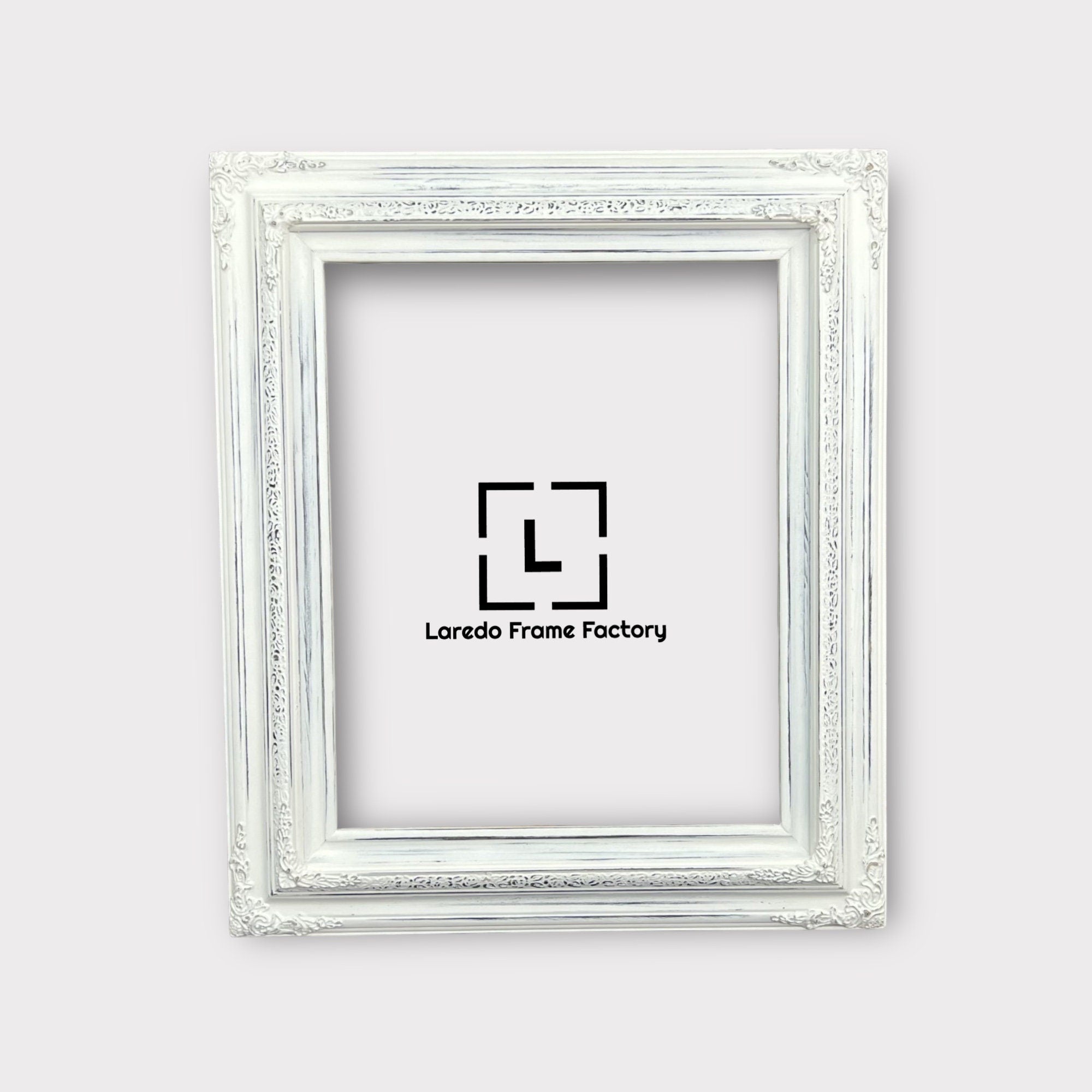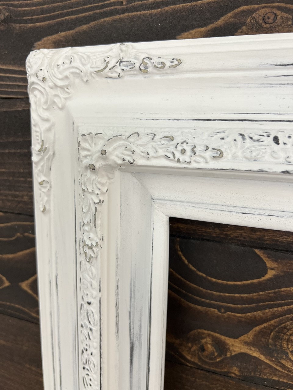 6 x 8 In Stock - Ready to Ship, Traditional compo ornate wood frame, DISTRESSED WHITE, white wood picture frame,canvas frame,