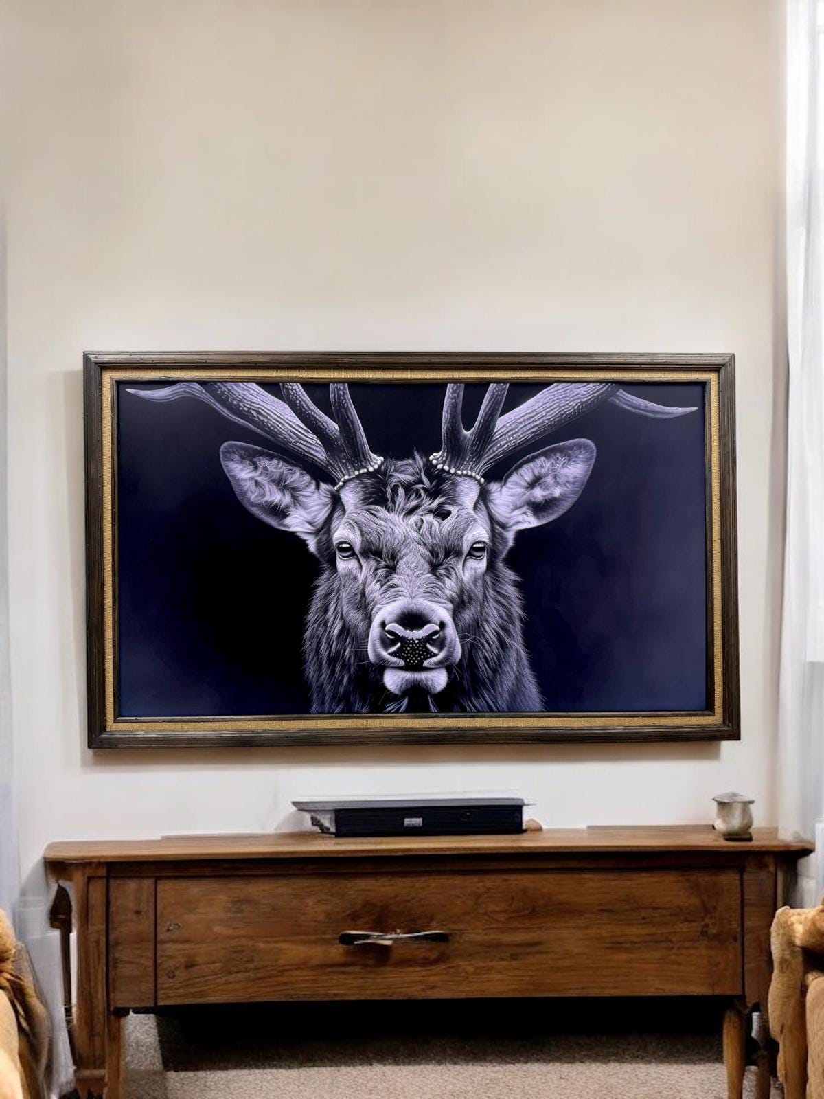 65 & 75 Inch TV frame for Samsung The Frame TV and Frame Pro TV models, Rustic Dark wood finish with Burlap,will not work for other TVs