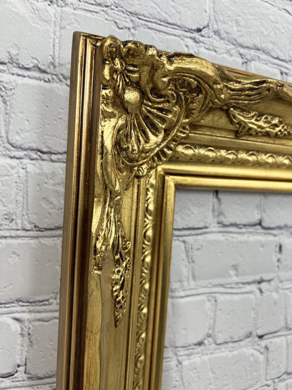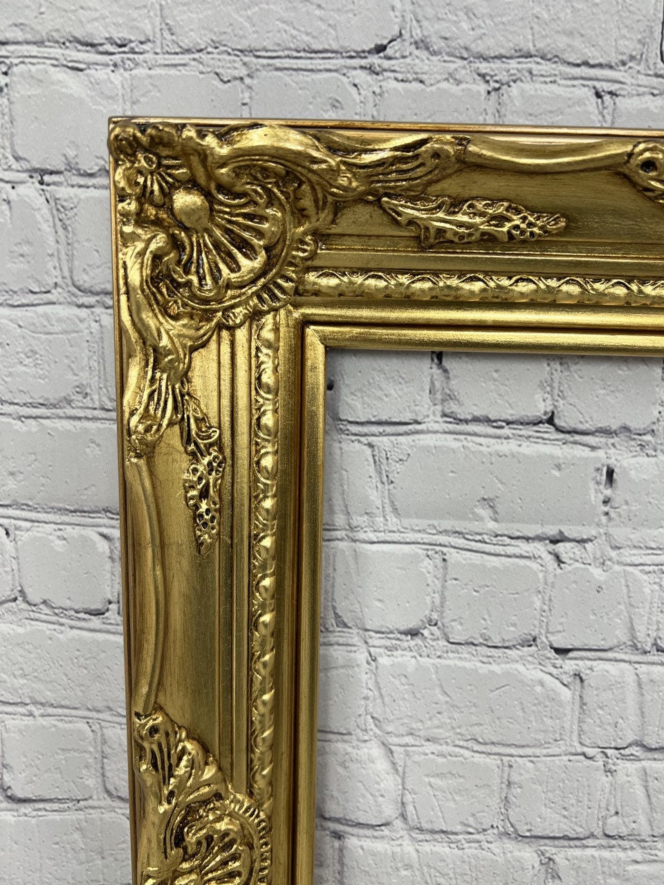 CLASSIC COLONIAL STYLE PICTURE FRAME. THIS VINTAGE STYLE FRAME HAS DETAILED CORNER AND CENTER DECORATIONS WITH HAND CARVED EDGES.
