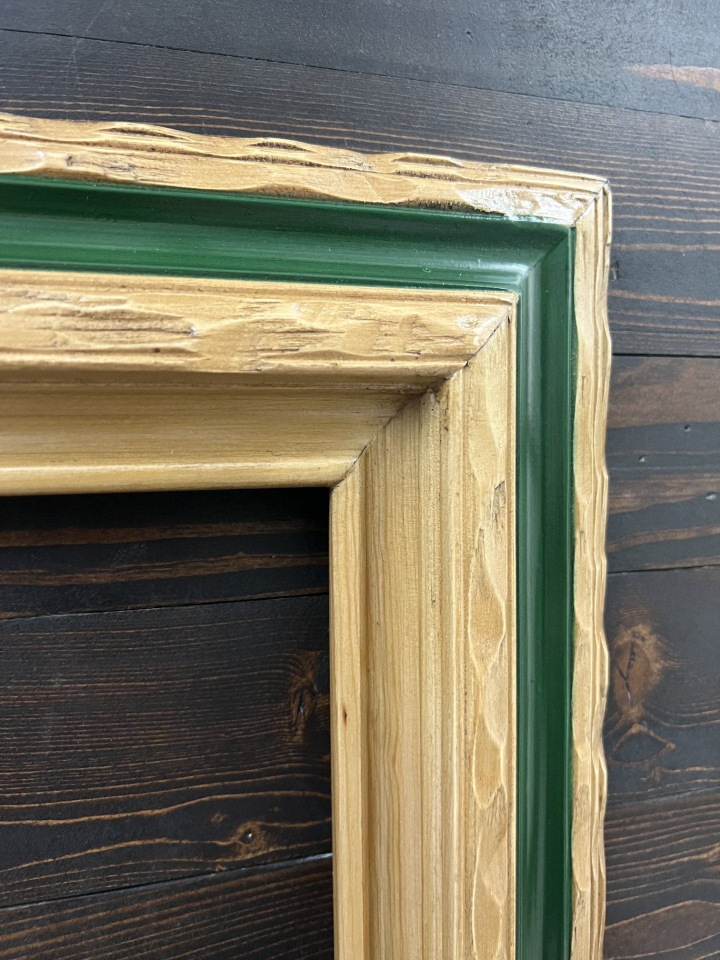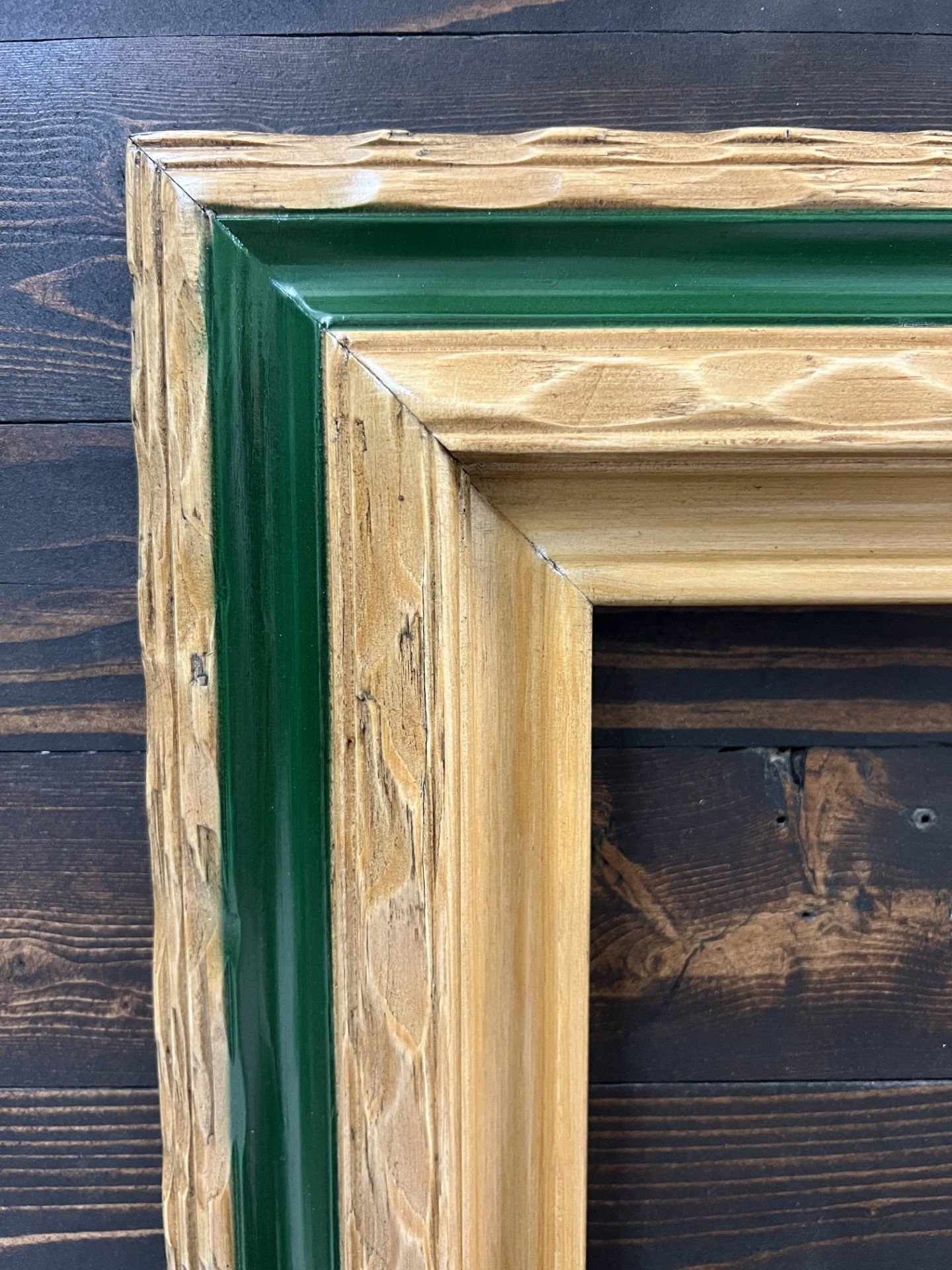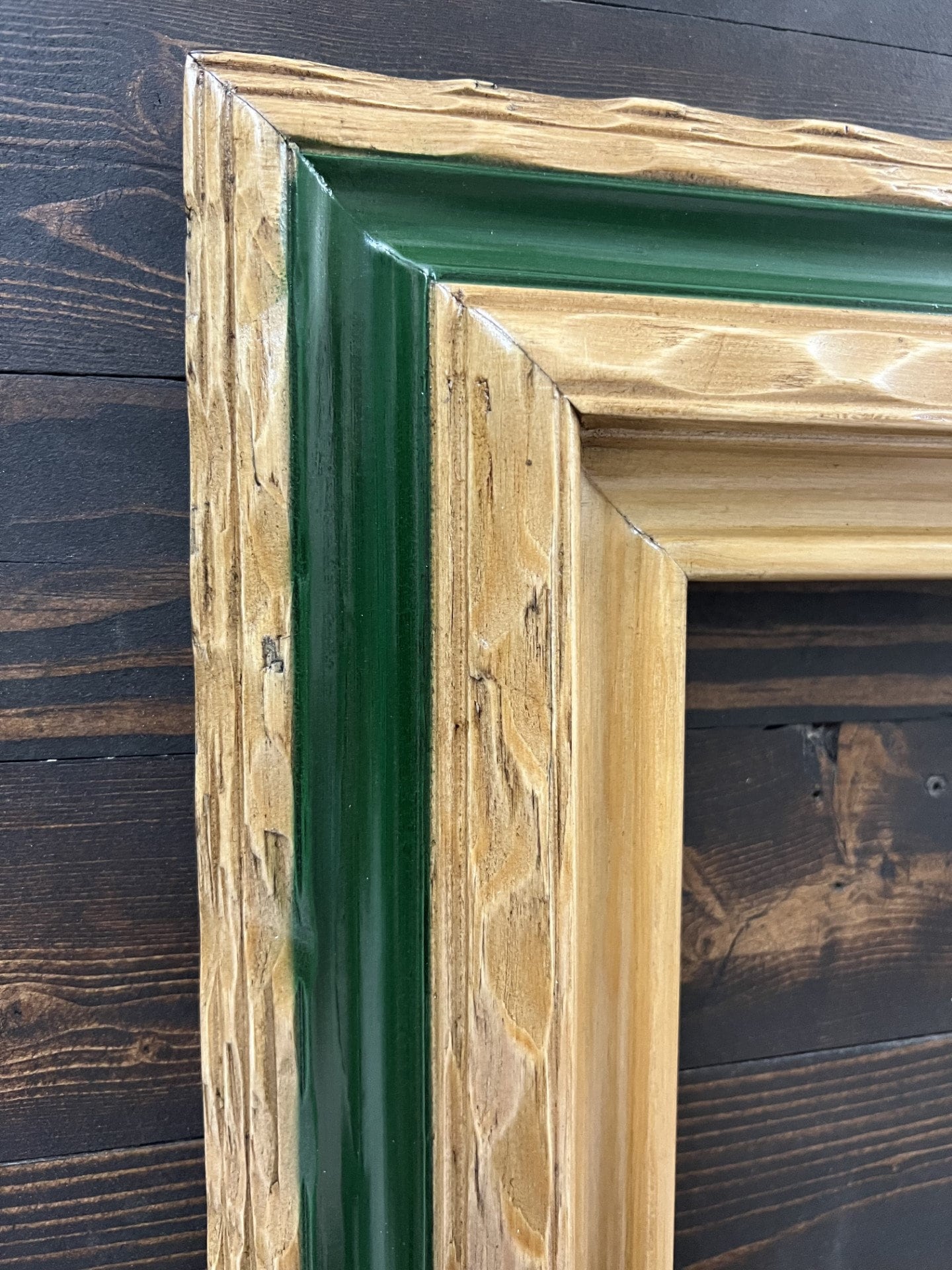 8 x 10 In Stock - Ready to Ship, Rustic western style wood picture frame, NATURAL FINISH with GREEN accent, distressed frame,