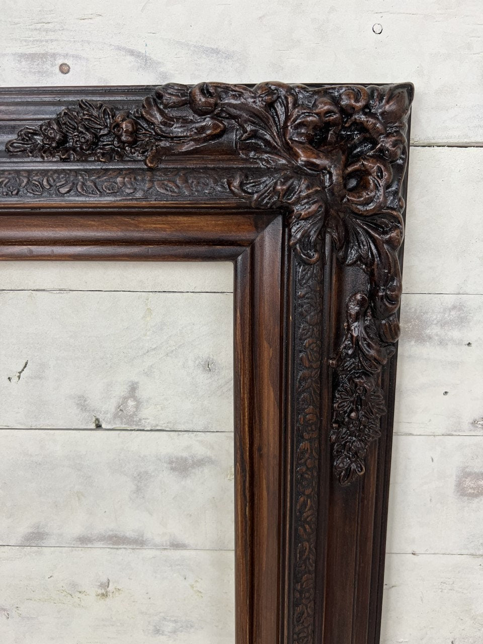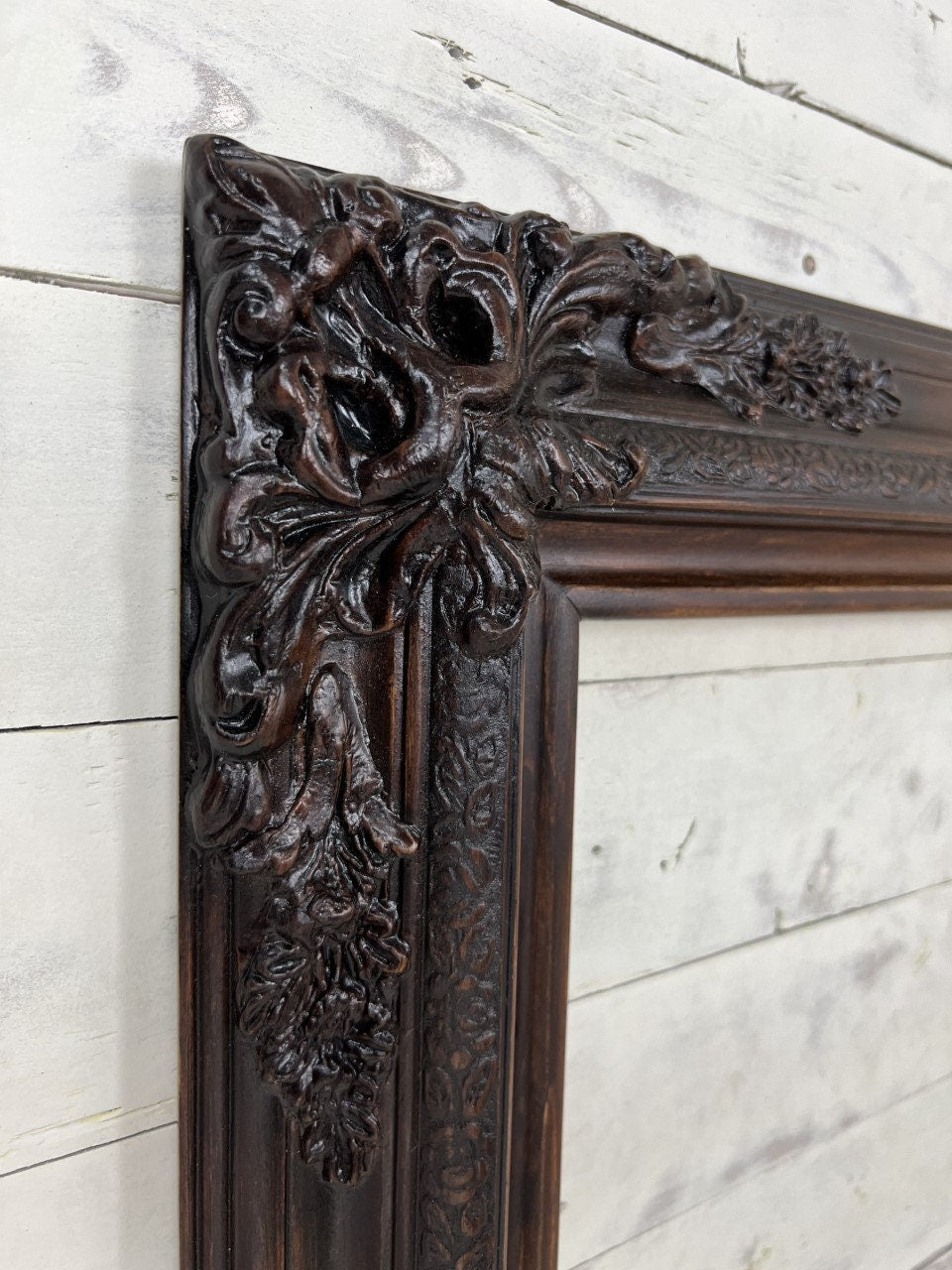 9 x 12 - In Stock - Ready to Ship, Traditional compo XL ornate corners wood frame, Dark Walnut, vintage wood picture frame, antique style