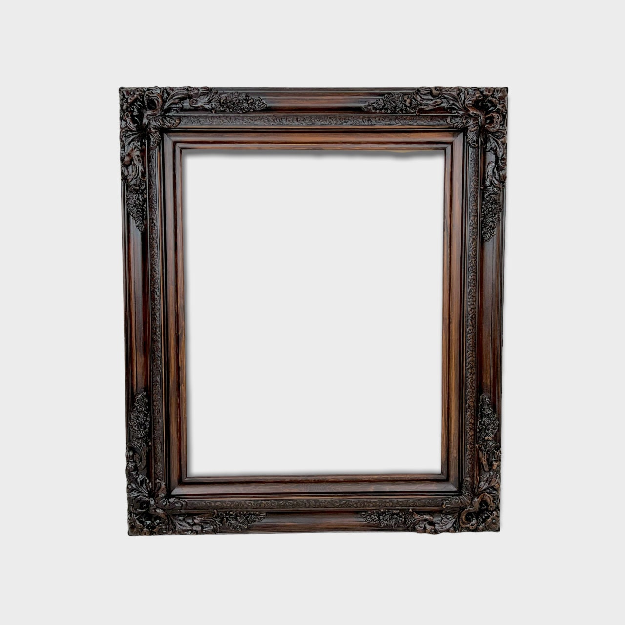 TRADITONAL WOOD PICTURE FRAME WITH XL COMPO ORNATE CORNERS. THESE ARE TWO PIECE SOLID WOOD FRAMES WITH AN ENGRAVED TRIM AND DECORATIVE FLORAL CORNERS. ALL OF OUR PICTURE FRAMES ARE ASSEMBLED WITH CLOSED CORNERS. WE CUT, JOIN, SAND, AND FINISH IN MANY UNIQUE TECHNIQUES.