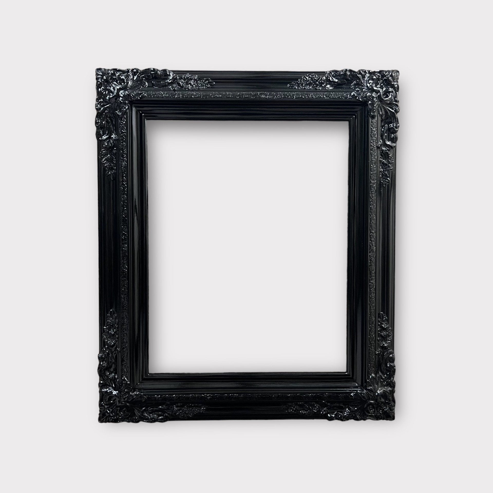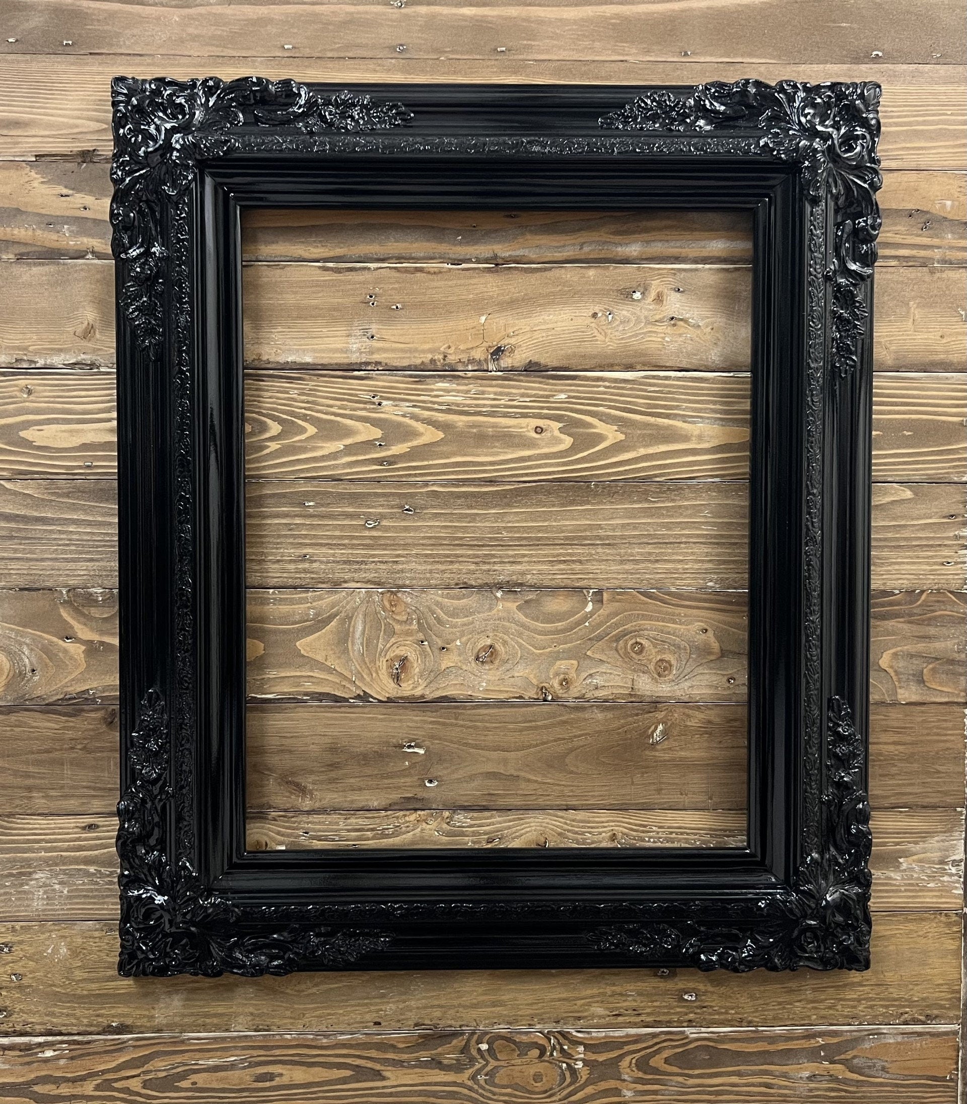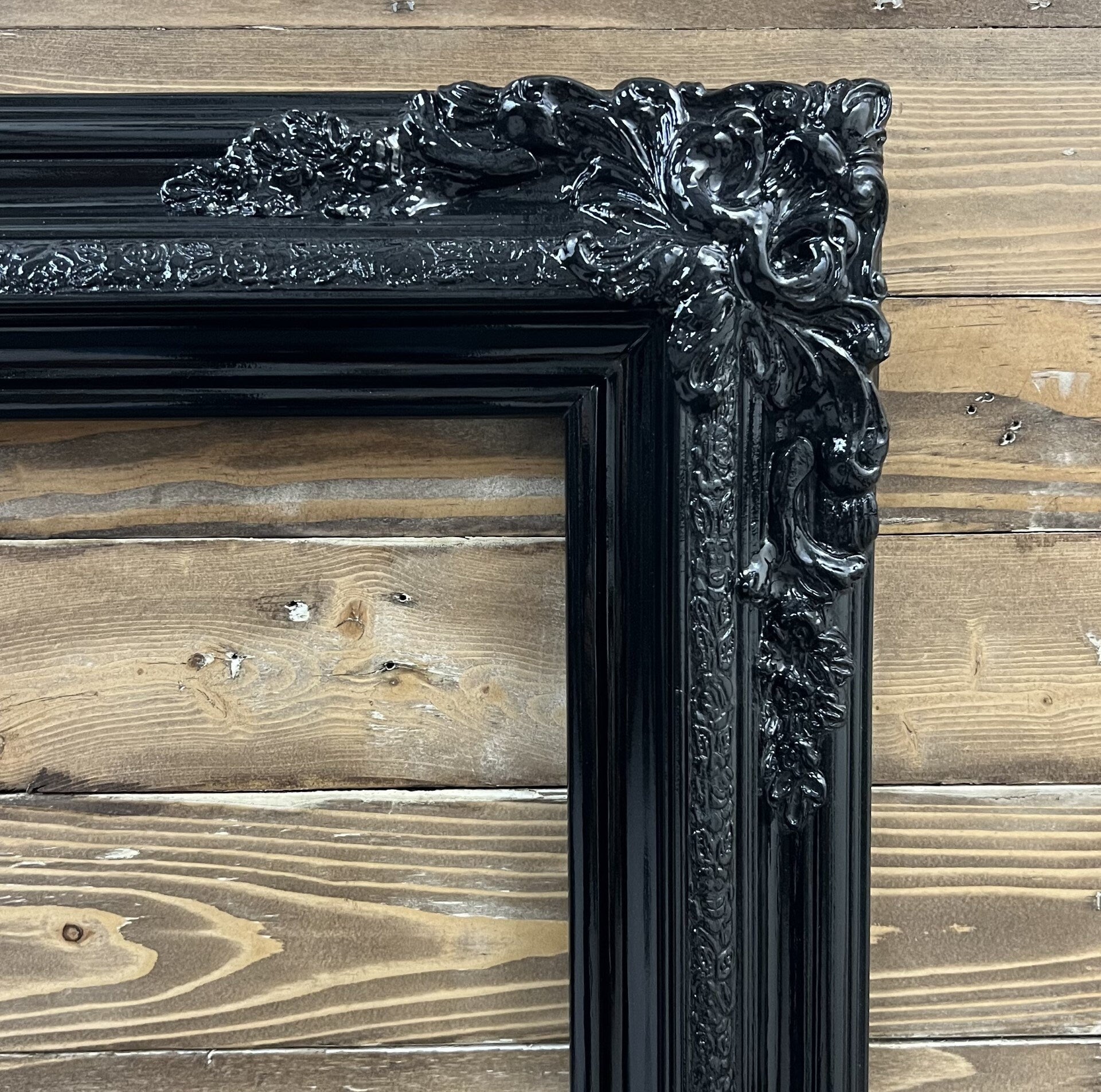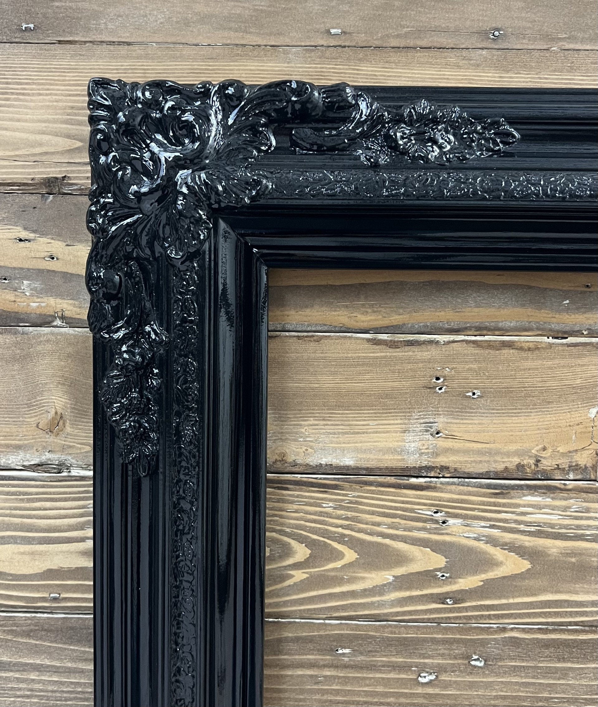 9 x 12 In Stock - Ready to Ship, Traditional compo Xl ornate corners wood frame, HIGH GLOSS BLACK, vintage wood picture frame, antique style