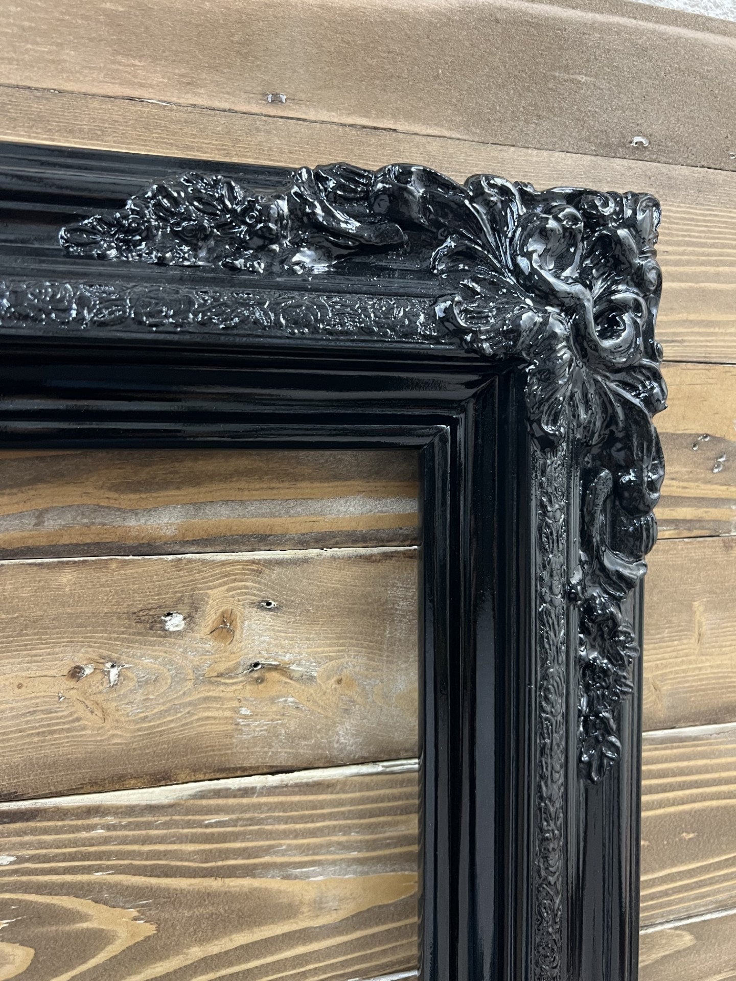 THIS FRAME IS HAND PAINTED IN BLACK WITH A HIGH GLOSS FINISH.