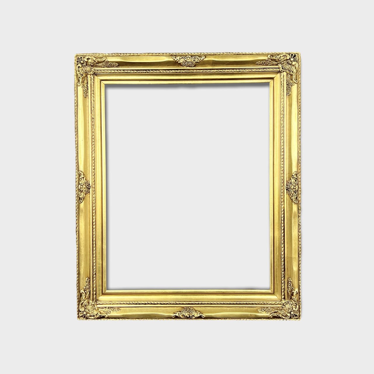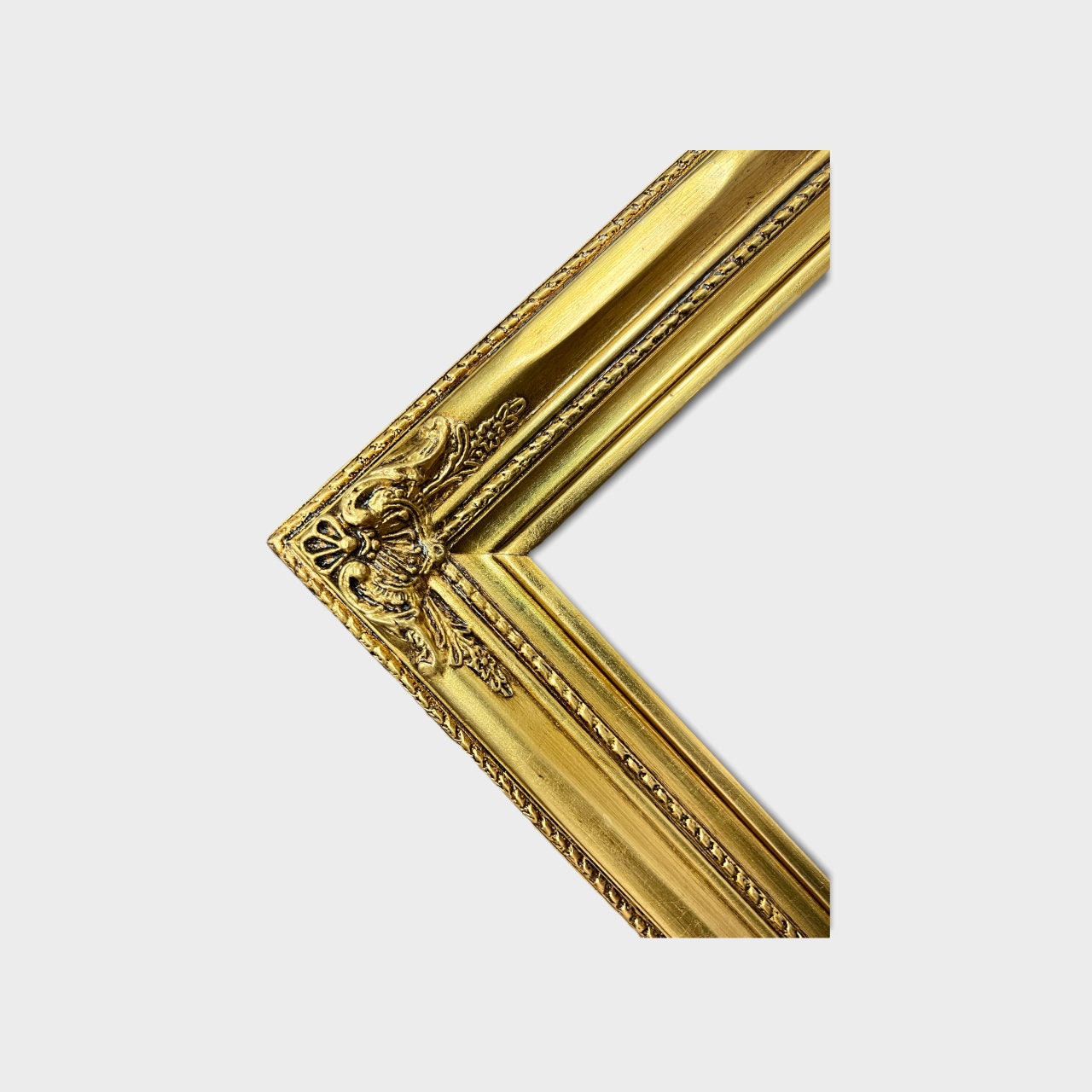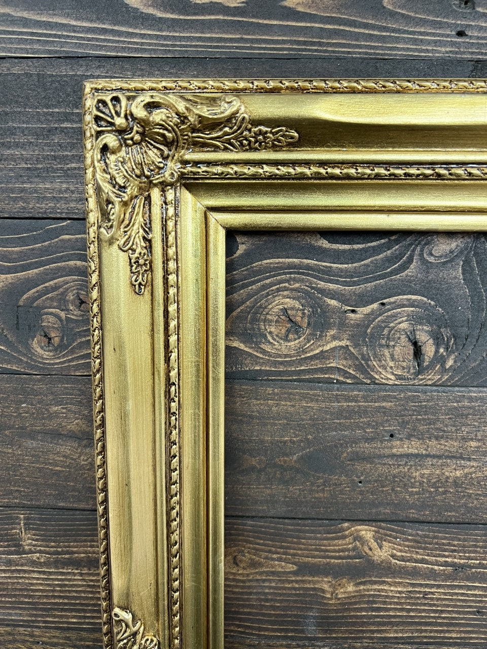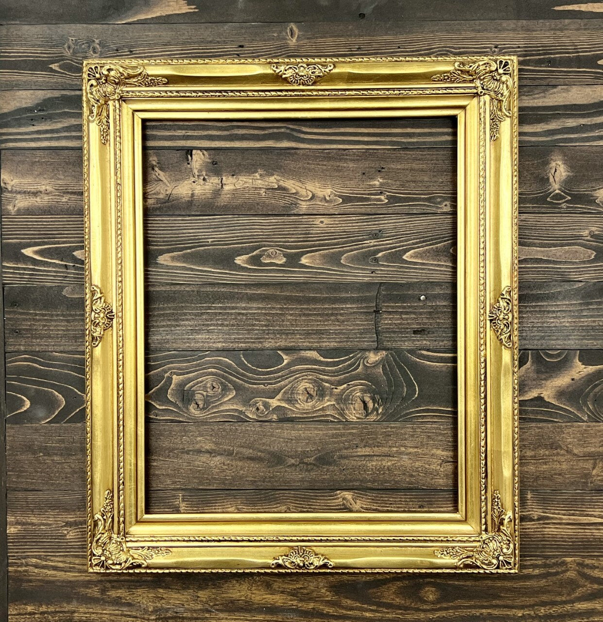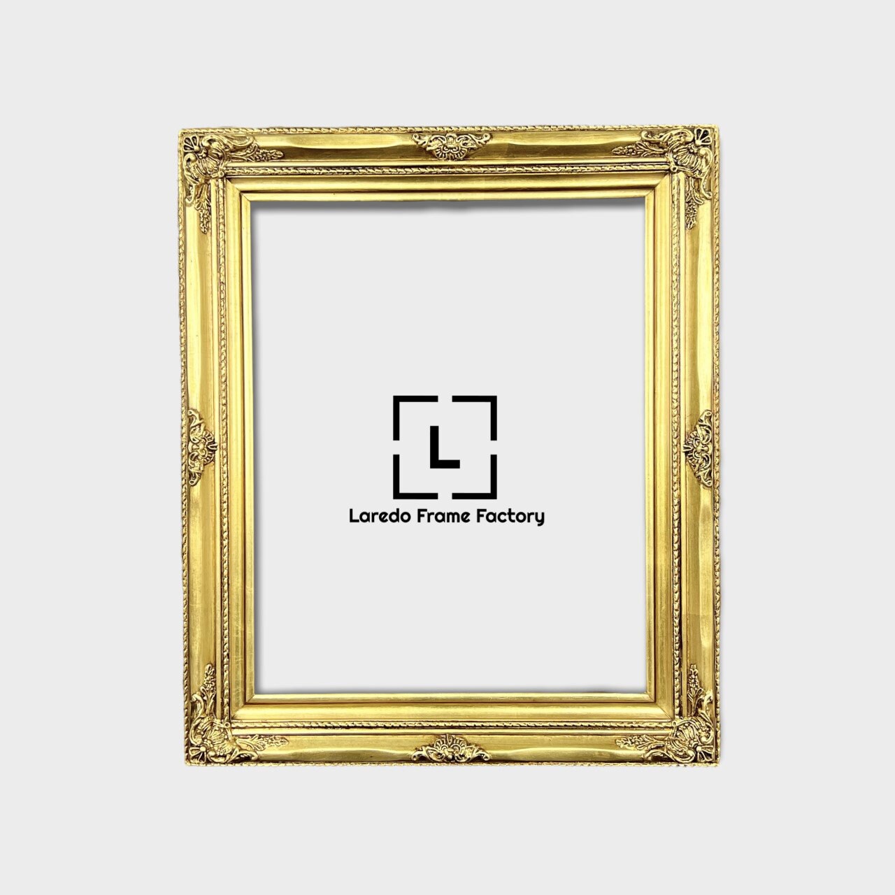 NARROW CLASSIC COLONIAL STYLE FRAME. THESE ARE TWO PIECE SOLID WOOD FRAMES WITH COMPO CORNER AND CENTER DETAILS. ALL OF OUR PICTURE FRAMES ARE ASSEMBLED WITH CLOSED CORNERS. WE CUT, JOIN, SAND, AND FINISH IN MANY UNIQUE TECHNIQUES.