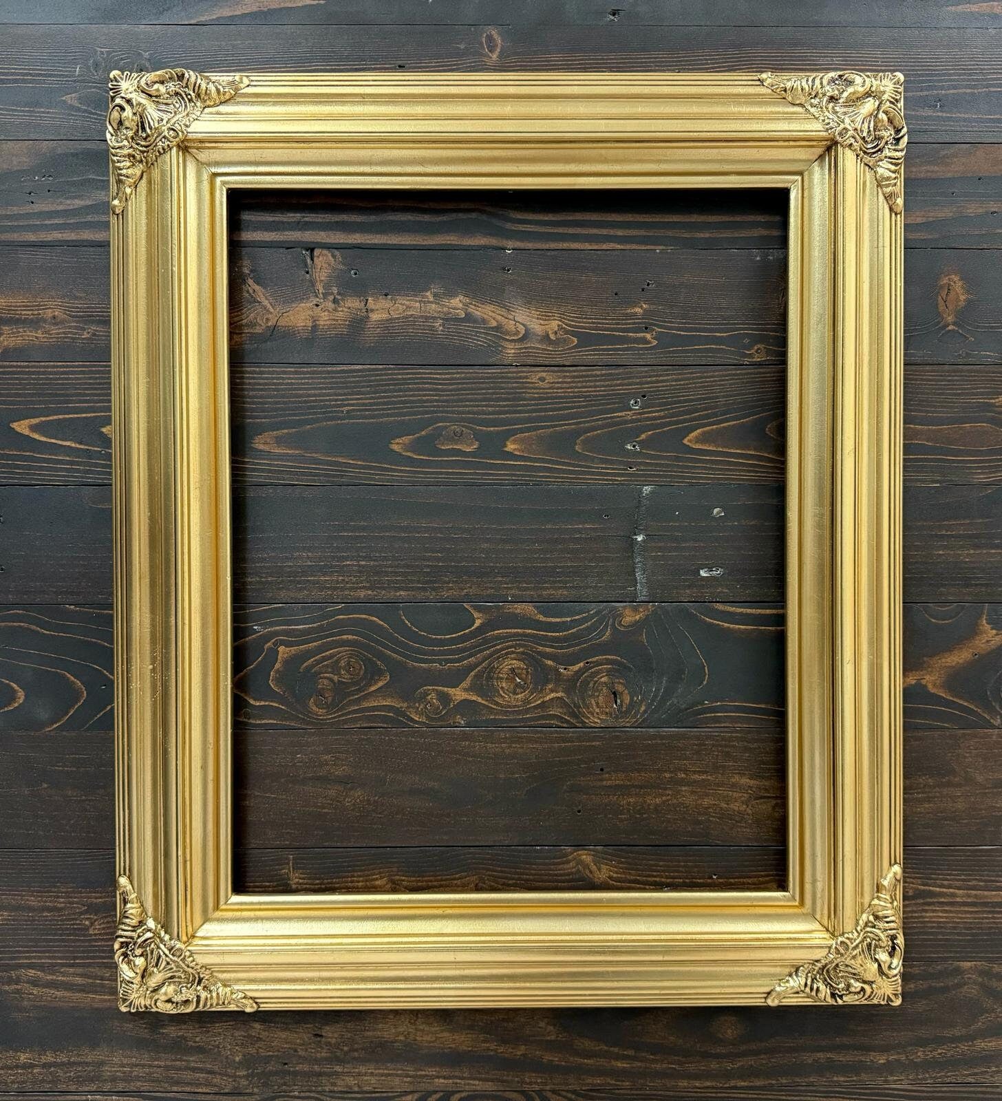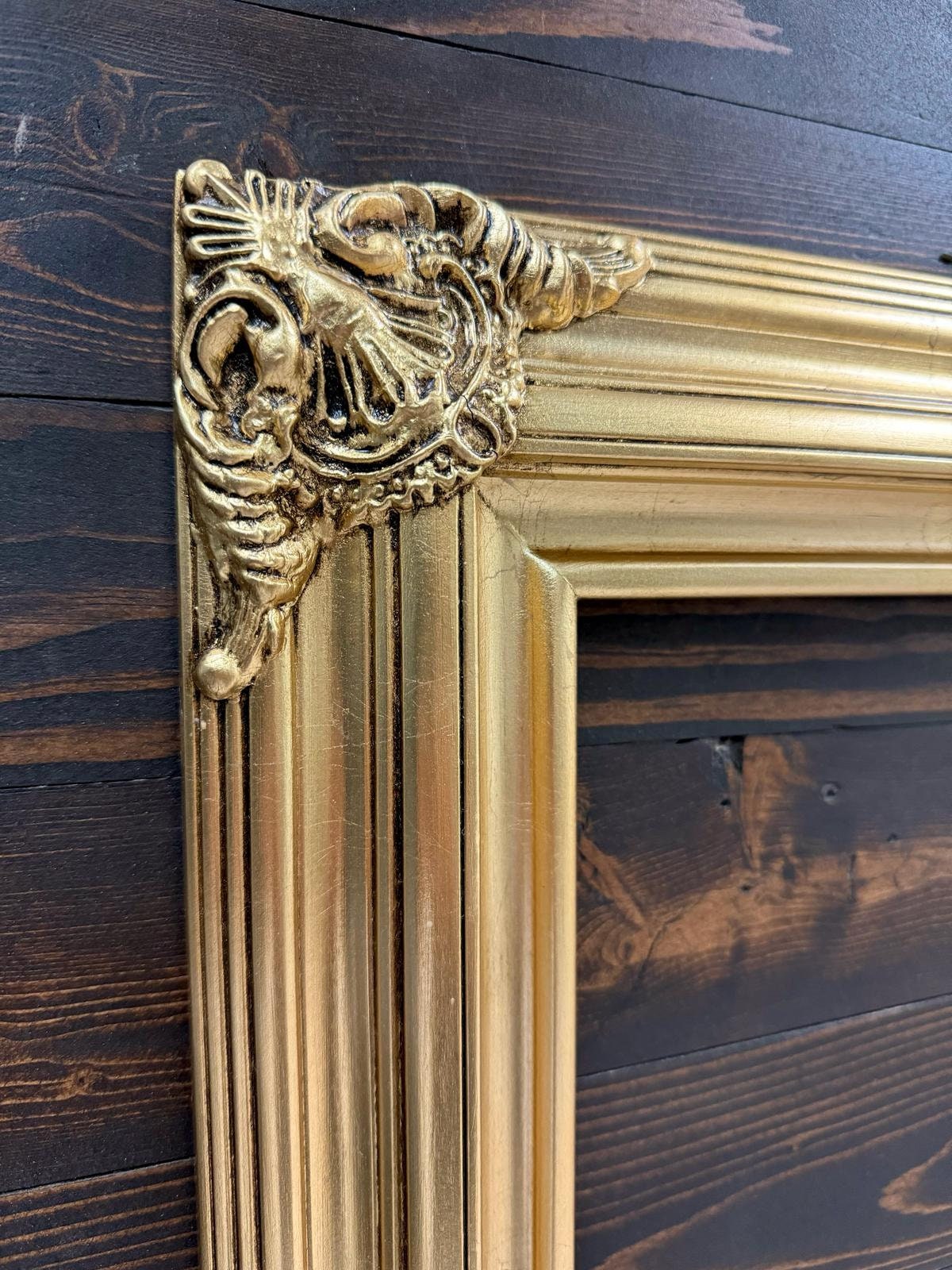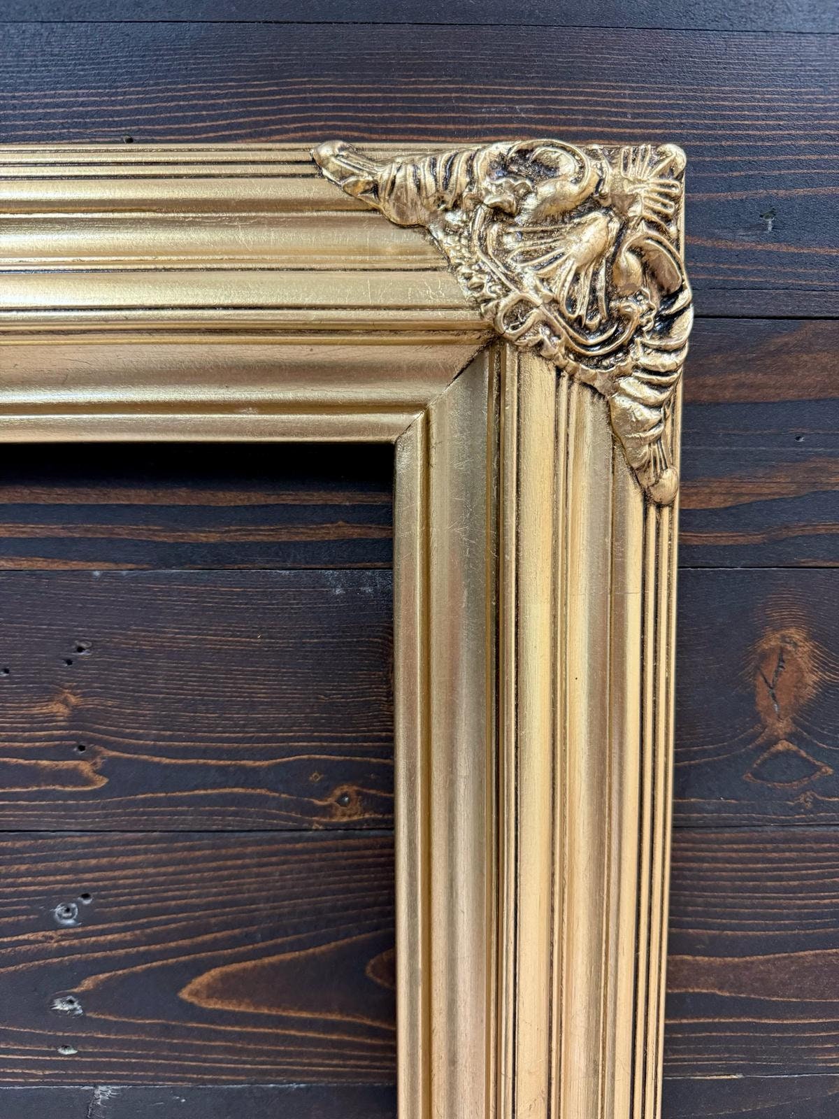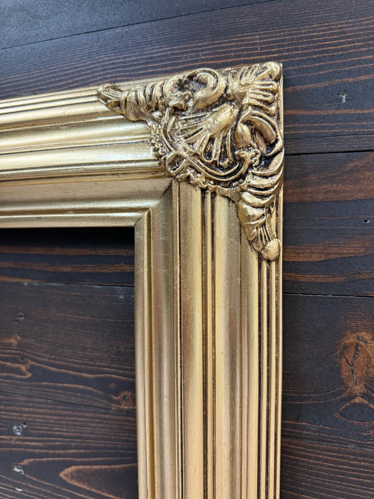 Classic compo ornate wood frame. These are two piece solid wood frame with classic detailed ornate corner decoartions.