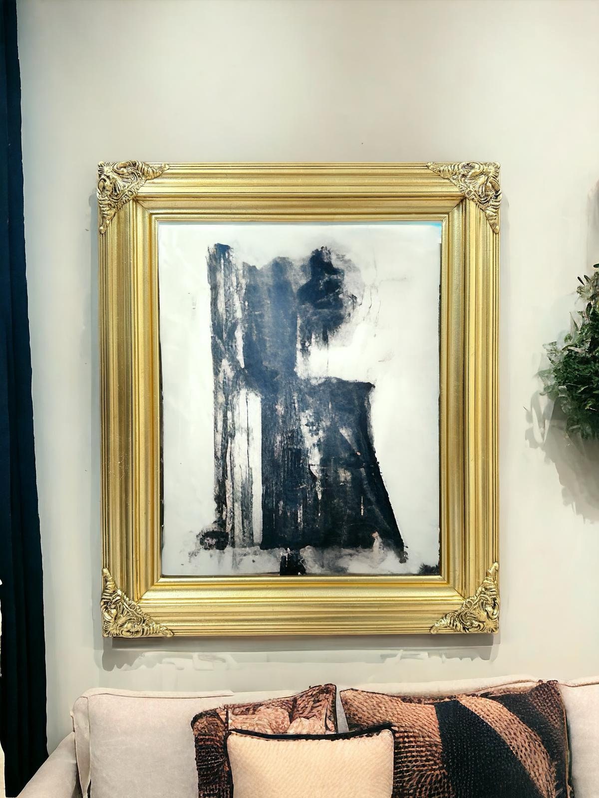THE FRAME HAS HAND GOLDED GOLD LEAF AND FINISHED WITH A LIGHT PATINA STAIN.