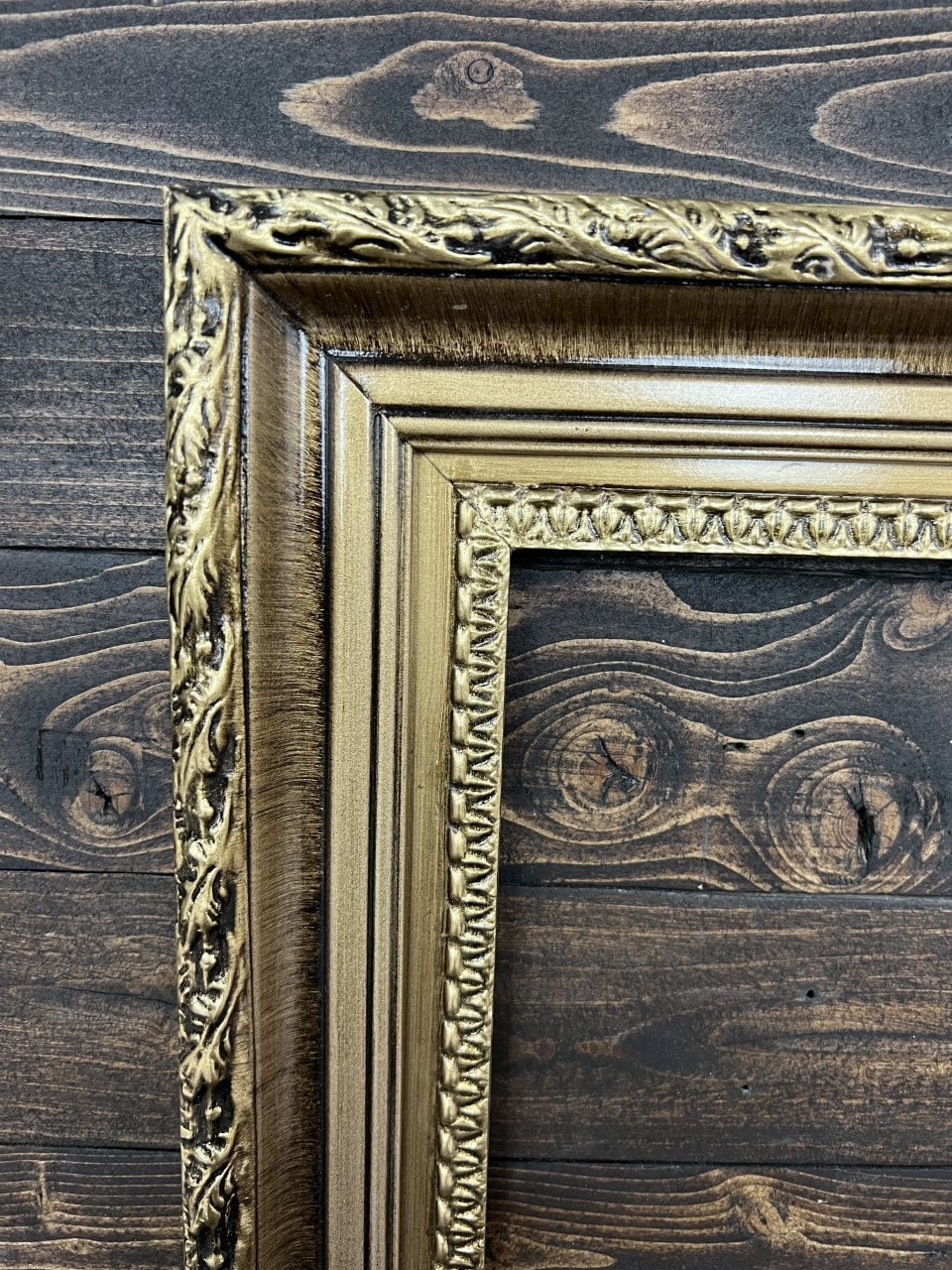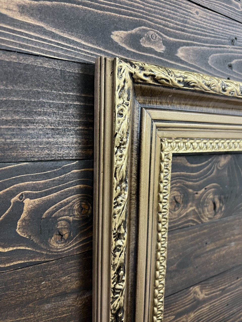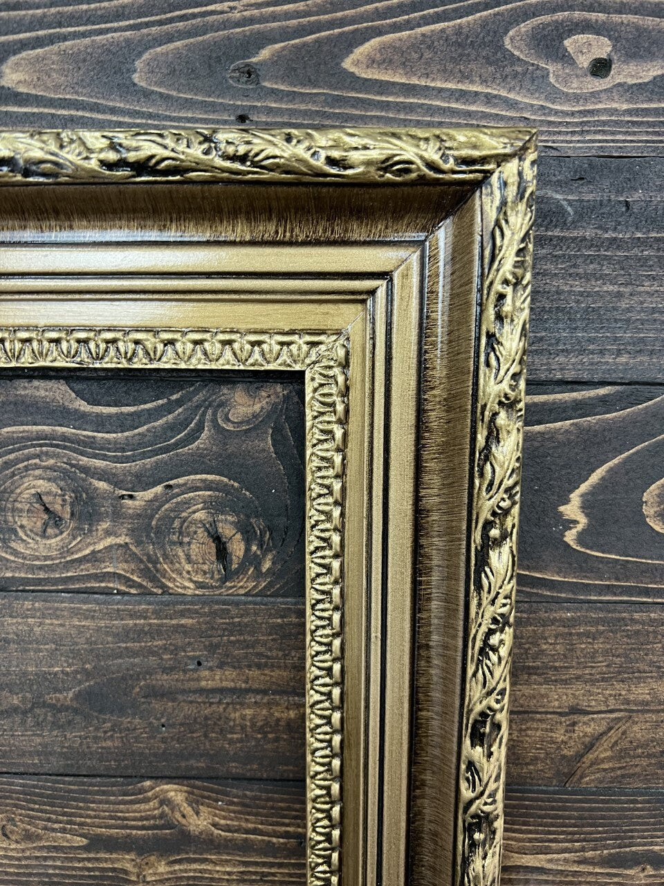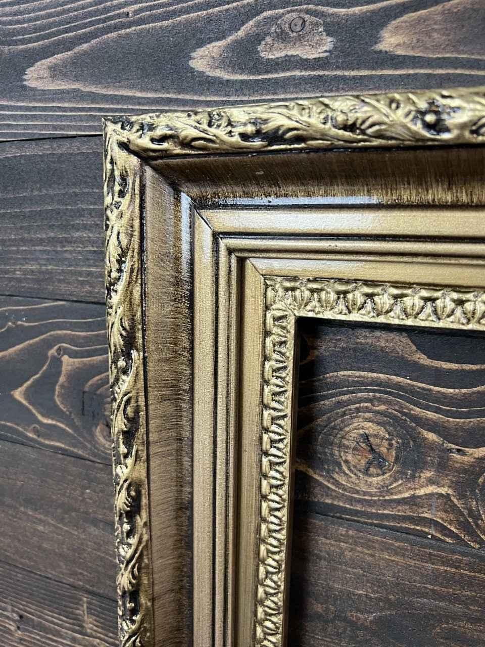 THESE ARE TWO PIECE SOLID WOOD FRAMES WITH AN ENGRAVED TRIM AND OVER SIZE DECORATIVE FLORAL CORNERS. ALL OF OUR PICTURE FRAMES ARE ASSEMBLED WITH CLOSED CORNERS. WE CUT, JOIN, SAND, AND FINISH IN MANY UNIQUE TECHNIQUES.