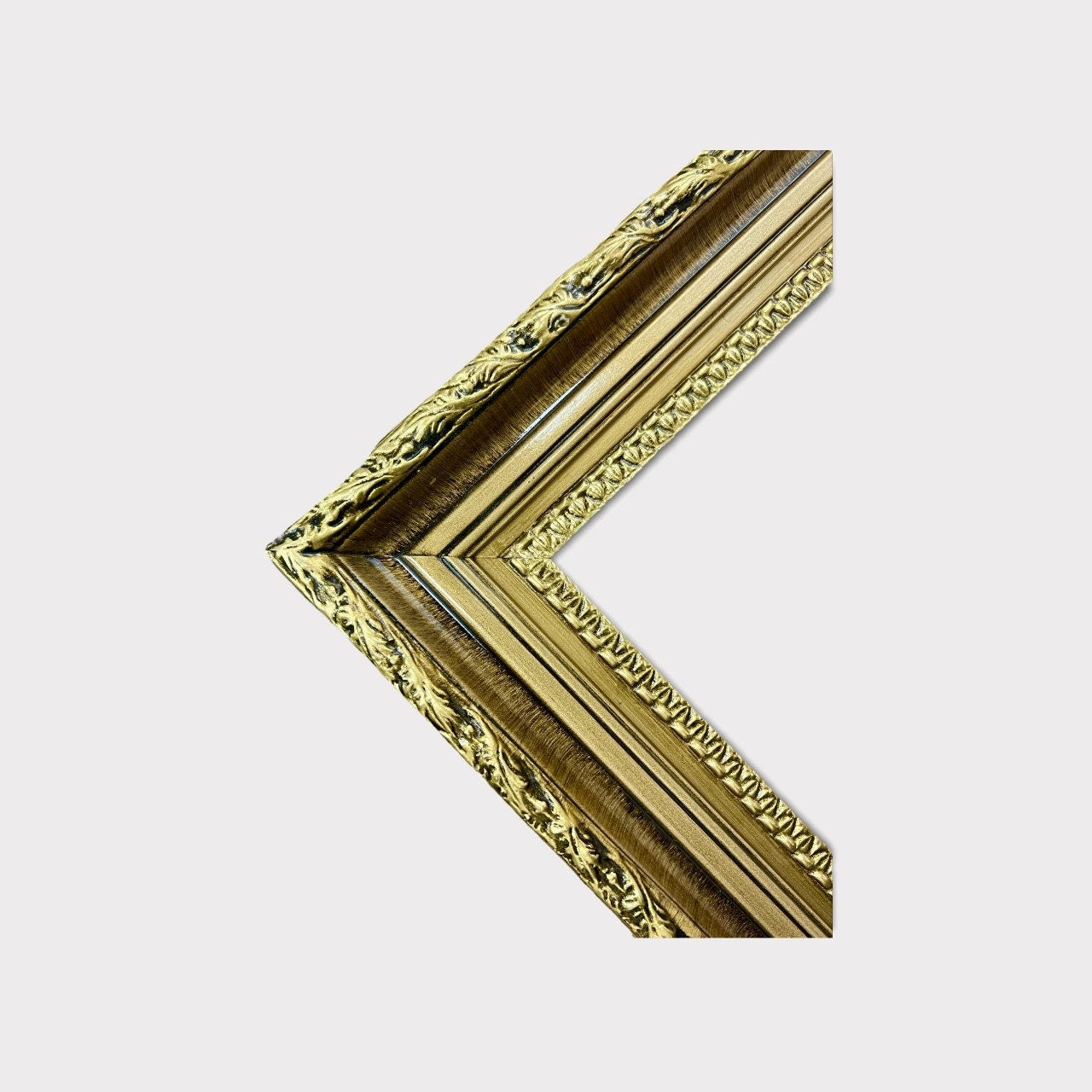 THIS FRAME IS MADE UP OF GOLD BASE TONES AND FINISHED WITH A HAND BRUSHED EFFECT.