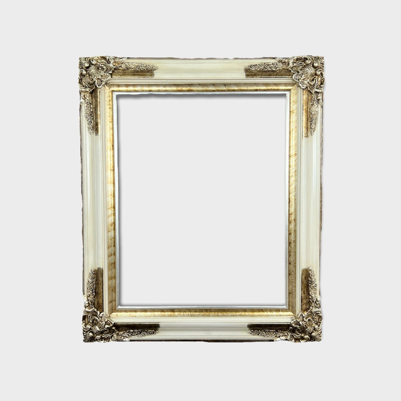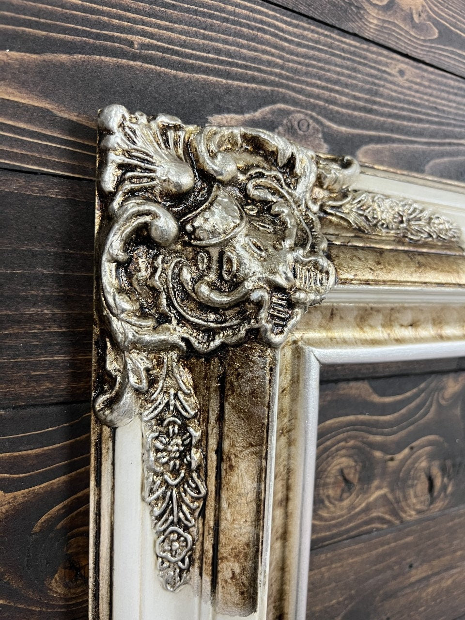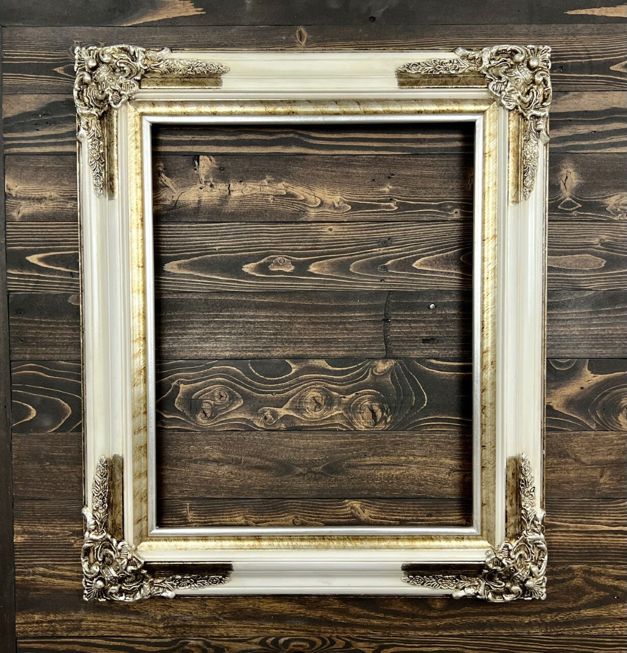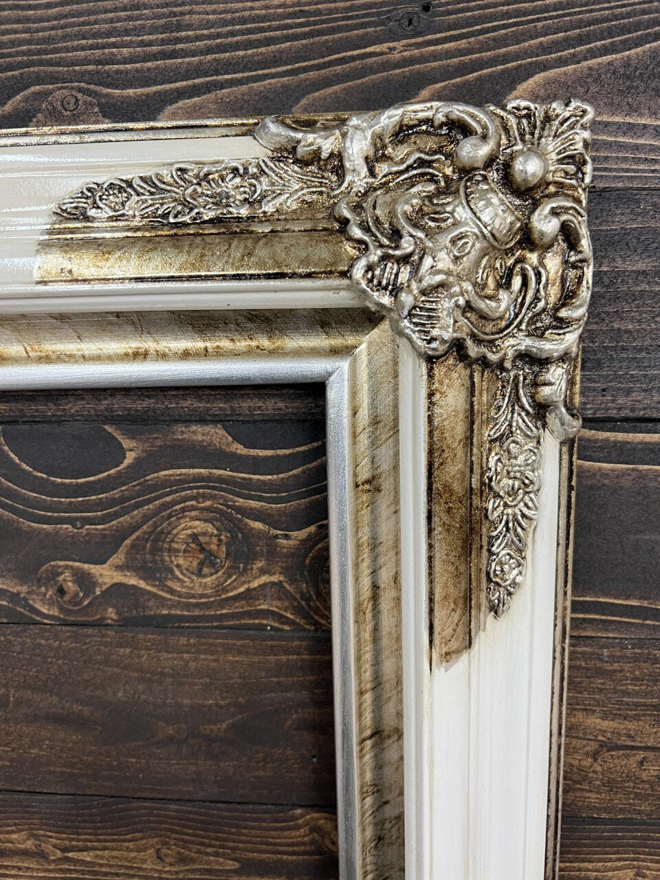 Classic ornate wood frame, White frame, silver leaf frame,custom canvas frame, portrait frame, vintage frame, photo frame, hand painted,