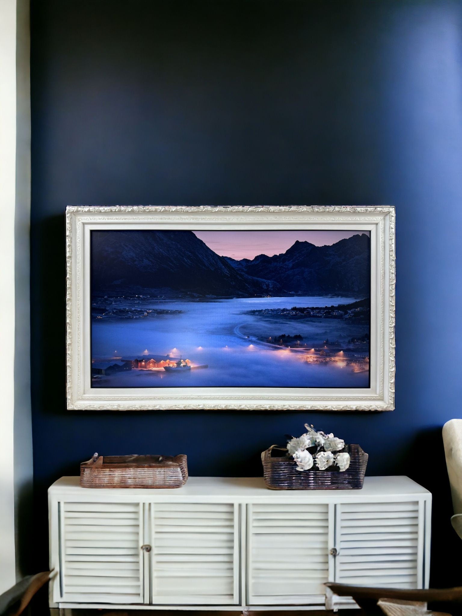 55 & 65 Inch Ornate frame for Samsung The Frame TV and Frame Pro TV models, Soft Ivory finish,not meant for use with other TVs.