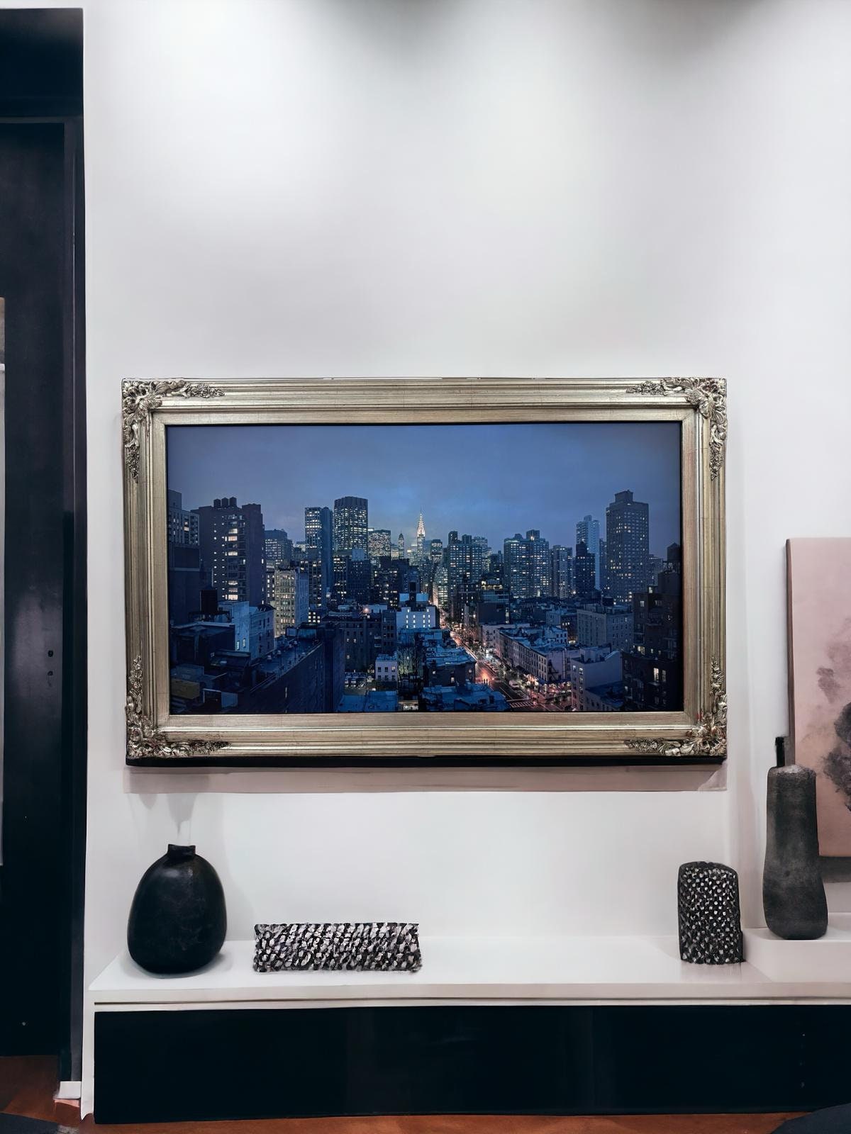 32, 43, 50 inch Ornate frame for Samsung The Frame TV and Frame Pro TV models, Antique Silver Leaf,not meant for use with other TVs.